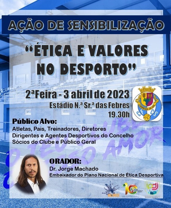 Ação de sensibilização denominada "Ética e Valores no Desporto", tendo como orador o Dr. Jorge Machado (Embaixador do Plano Nacional de Ética Desportiva).