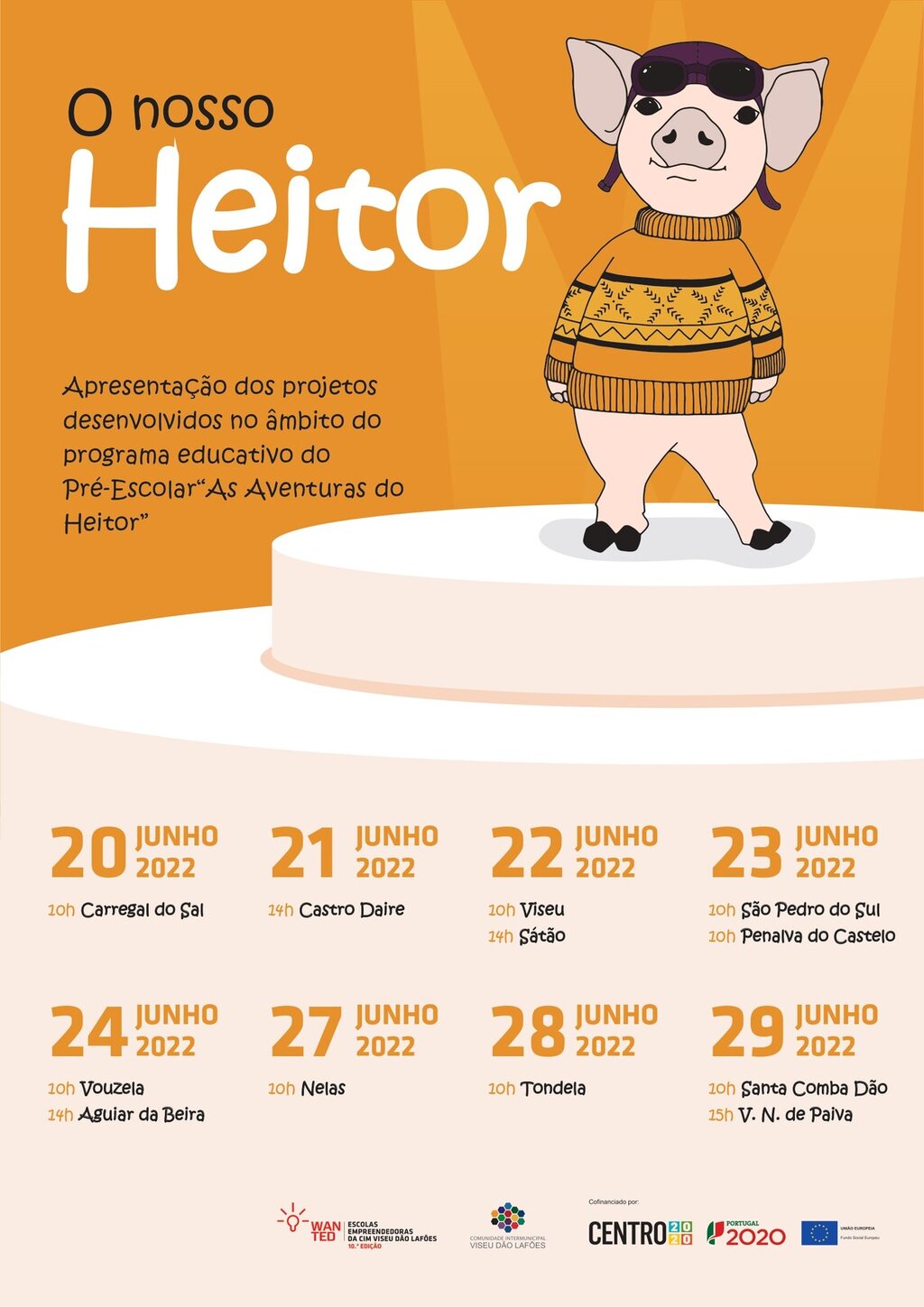 O Heitor vai estar no Município de Carregal do Sal, onde os alunos do pré-escolar vão poder apresentar os projetos desenvolvidos no âmbito do programa educativo, "As Aventuras do Heitor".