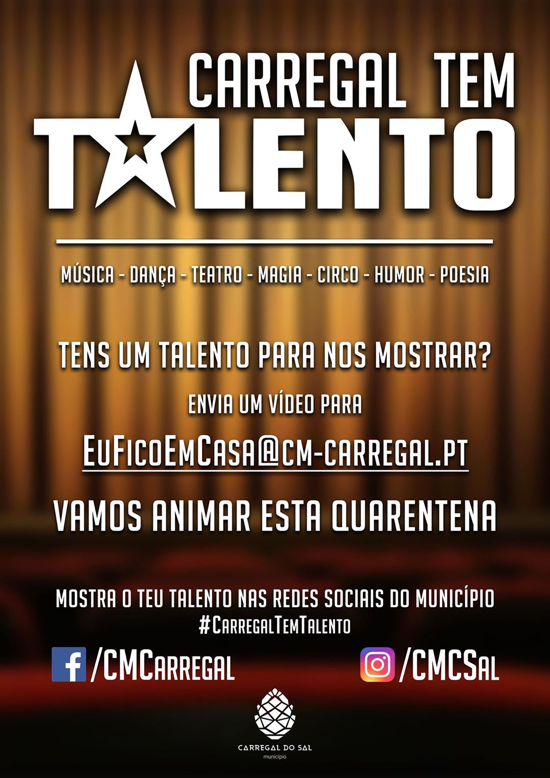 Todos são convidados a mostrarem e divulgarem o seu talento, nas mais diversas modalidades, através de um vídeo, que devem enviar para o email euficoemcasa@cm-carregal.pt.