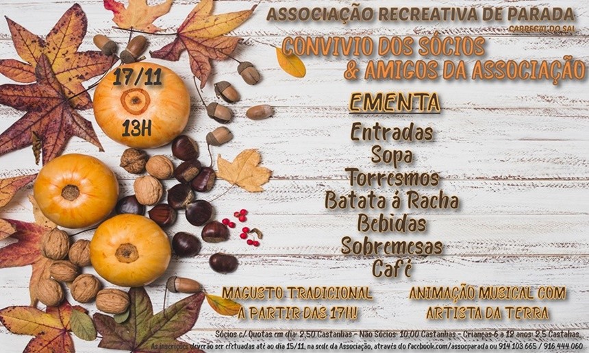 Almoço (Torresmos com batata à Racha) e tradicional magusto (a partir das 17h00)