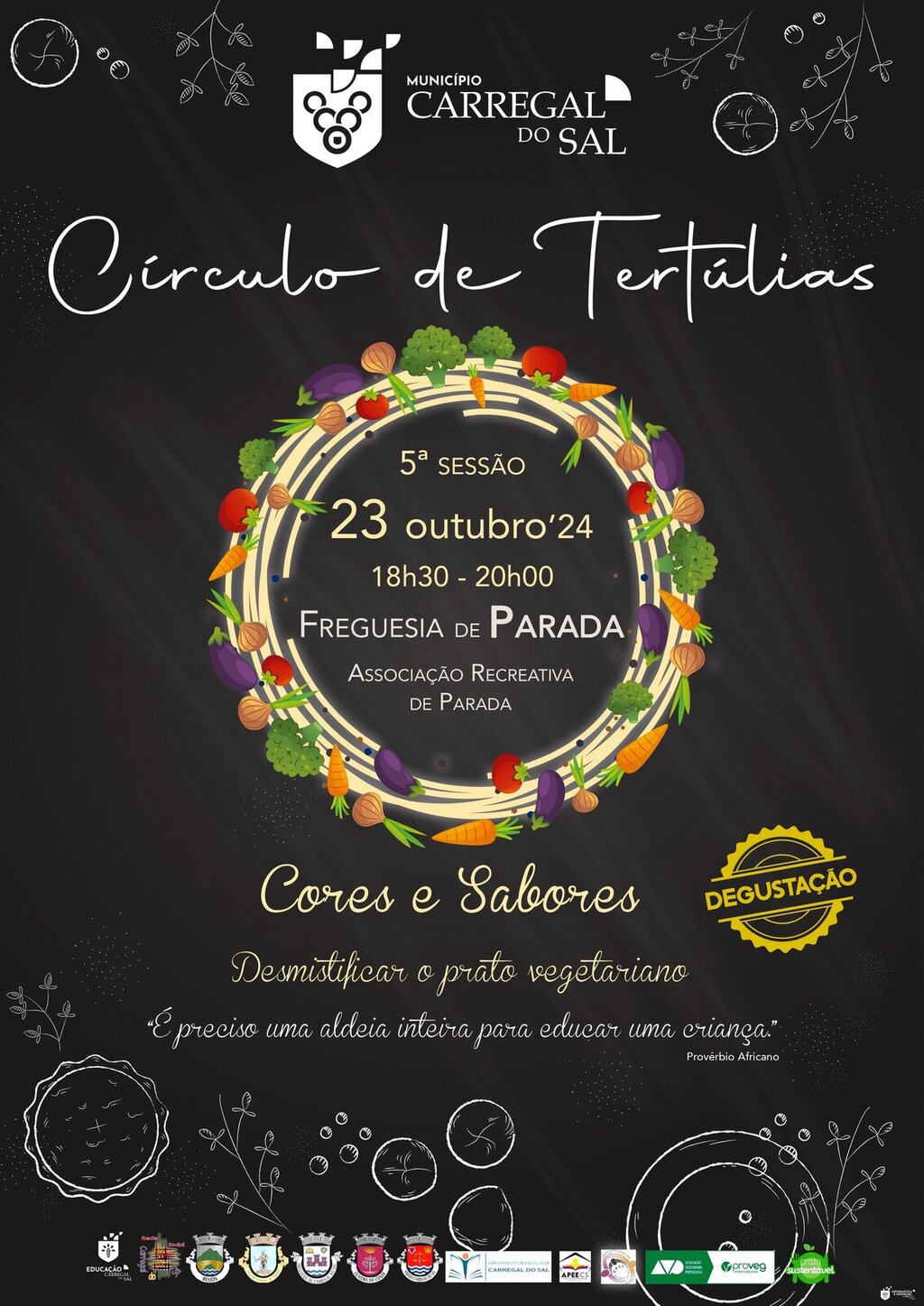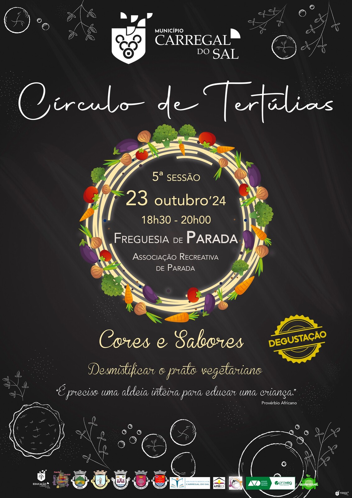 No final, um(a) cozinheiro(a) do Agrupamento de Escolas do Concelho vai preparar um prato vegetariano e, se estiver connosco presencialmente, será um dos nossos convidados privilegiados na degustação.