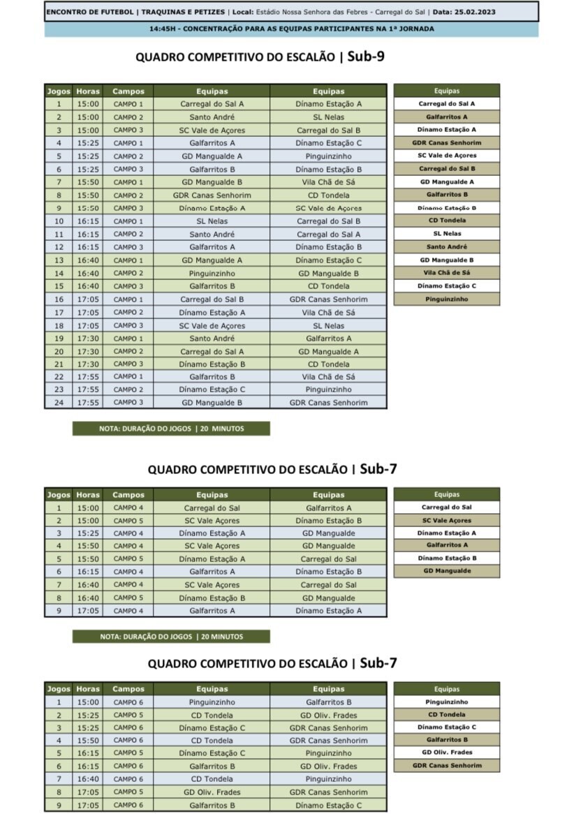 Nota: o nosso Clube irá participar com 2 equipas de sub 9 ( A e B ) e uma equipa de sub 7.