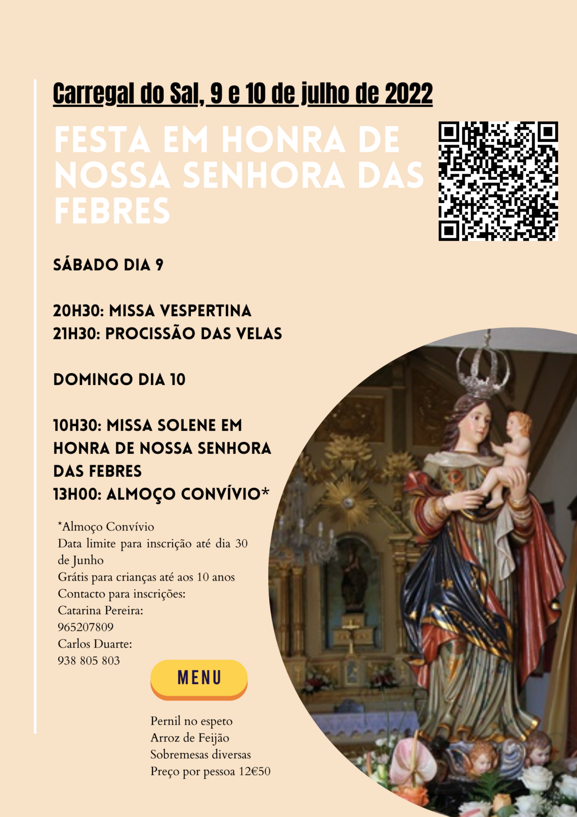 As inscrições para o almoço (pernil no espeto, arroz de feijão e sobremesa) decorrem até 30 de Junho (965207809; 938805803).