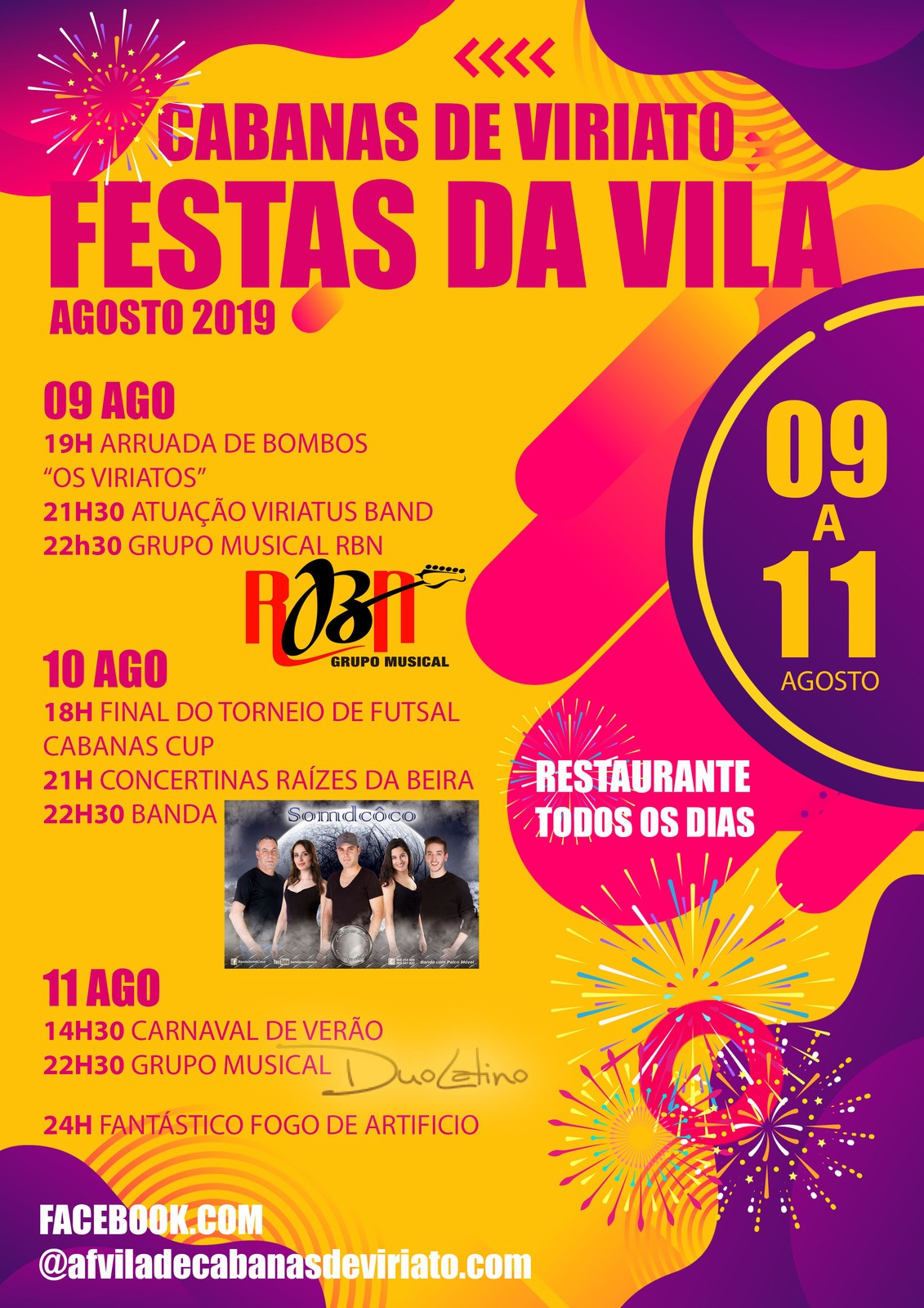 Local: Junto à Sociedade Filarmónica | Org.: Associação Festas da Vila Cabanas de Viriato