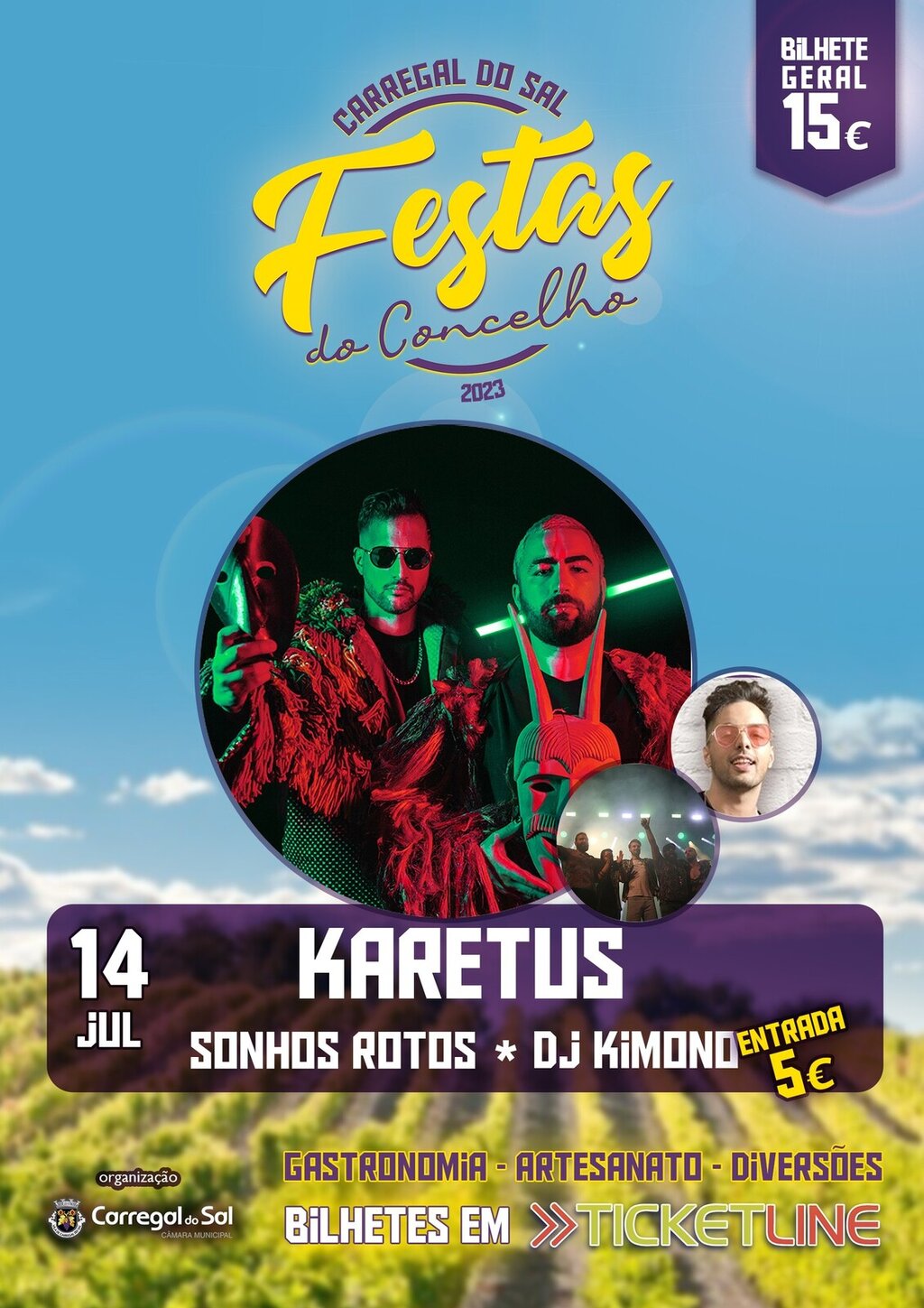 Entradas pagas de 13 a 16 de julho (grátis para crianças até aos 12 anos, inclusive), nas modalidades BILHETE DIÁRIO ou BILHETE GERAL.