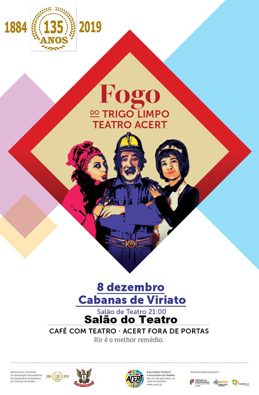 Teatro com representação da Peça “FOGO” do Trigo Limpo Teatro ACERT, no salão de Teatro dos Bombeiros, incluída na comemoração dos 135 anos do salão do Teatro.