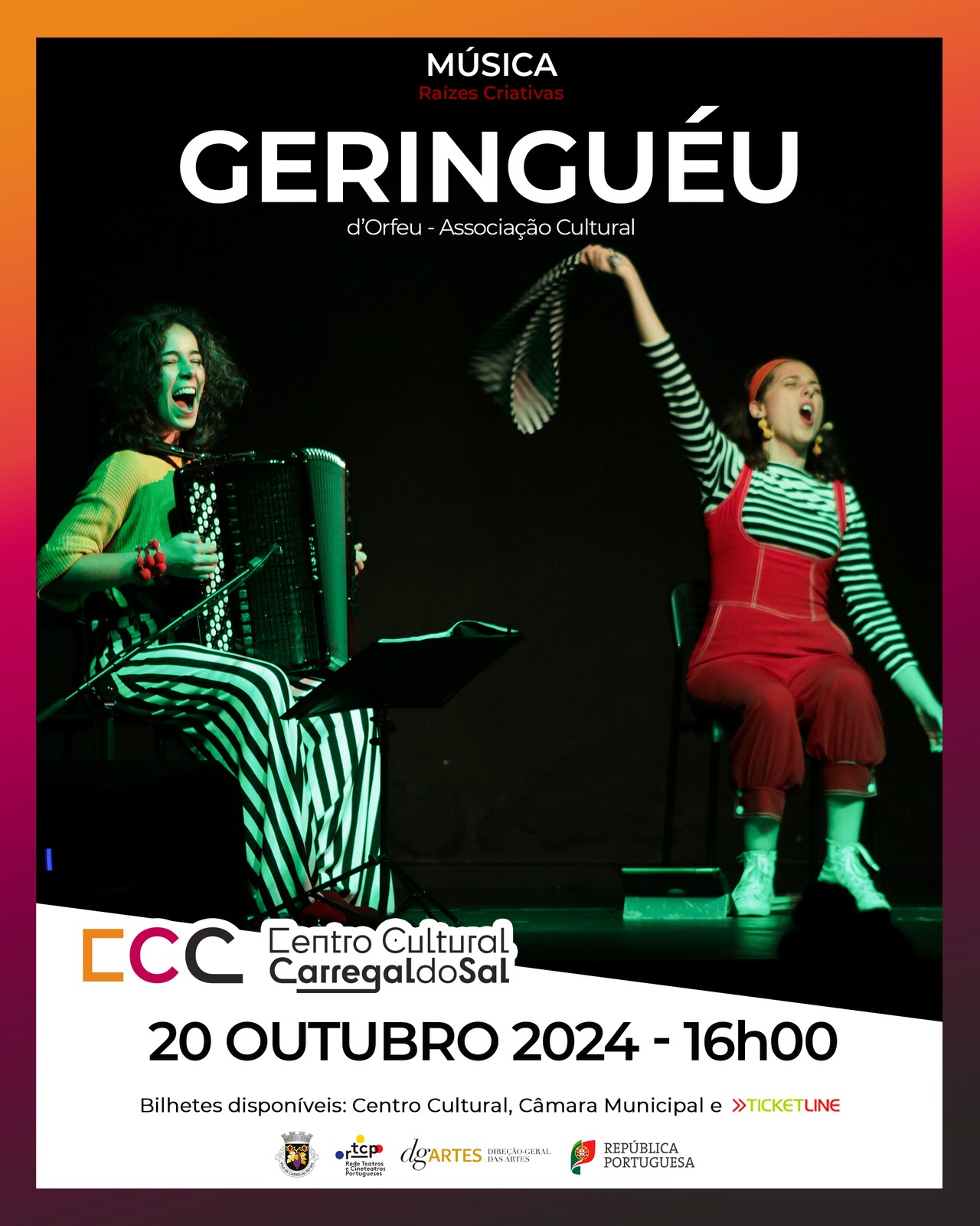 Geringuéu explora os paradoxos da vida através da construção (musical e não só). No palco, o fácil encontra o difícil e a ordem dissolve-se num caos harmonioso. A Dionísia com a voz (Laura Rui) e a Éfe com o seu acordeão (Sónia Sobral) desenrolam um novelo de canções simultaneamente difíceis e fáceis, usando o erro como caminho para novas criações.