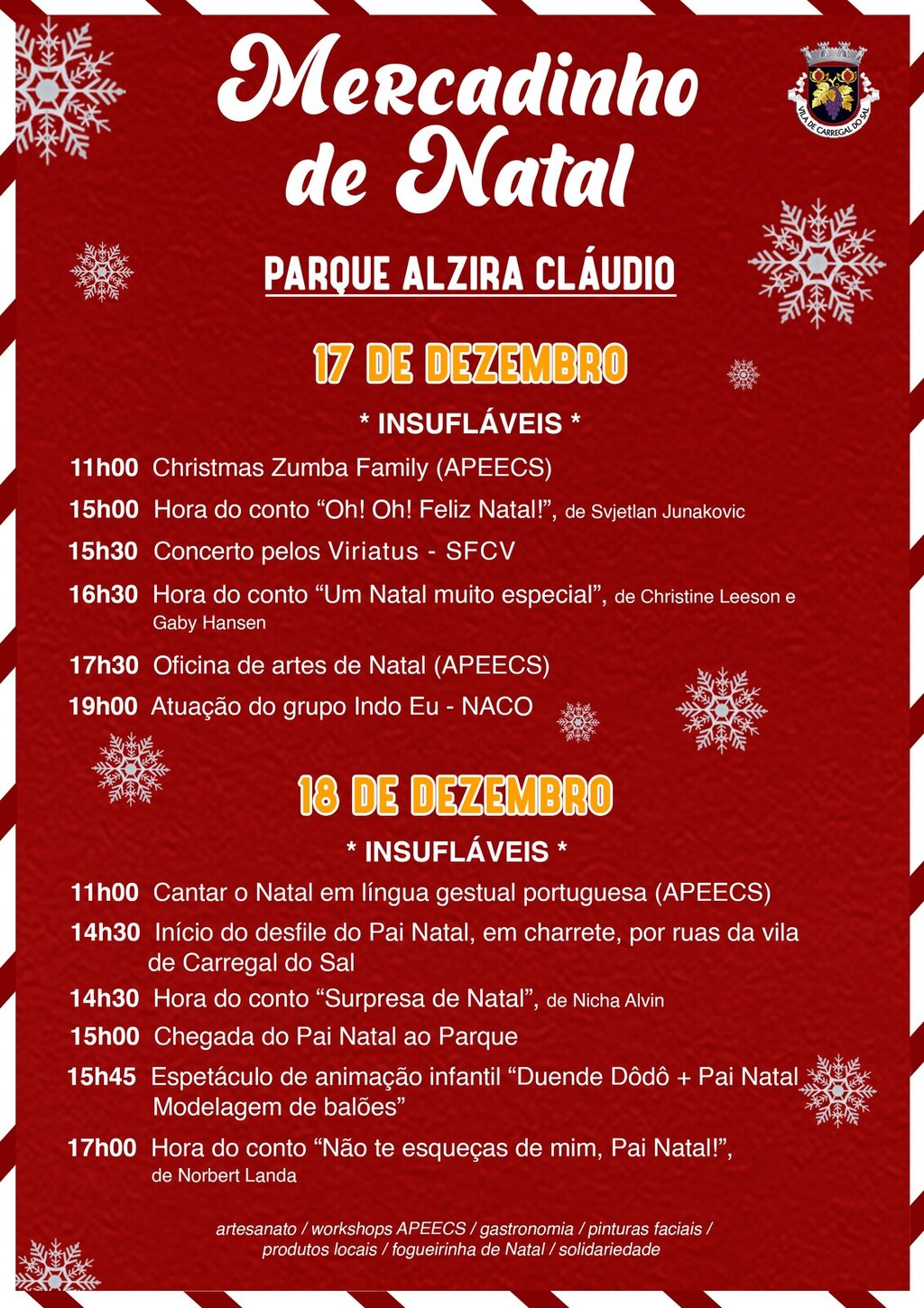 Artesanato / Workshops APEECS / gastronomia / pinturas faciais / produtos locais / fogueirinha de Natal / solidariedade