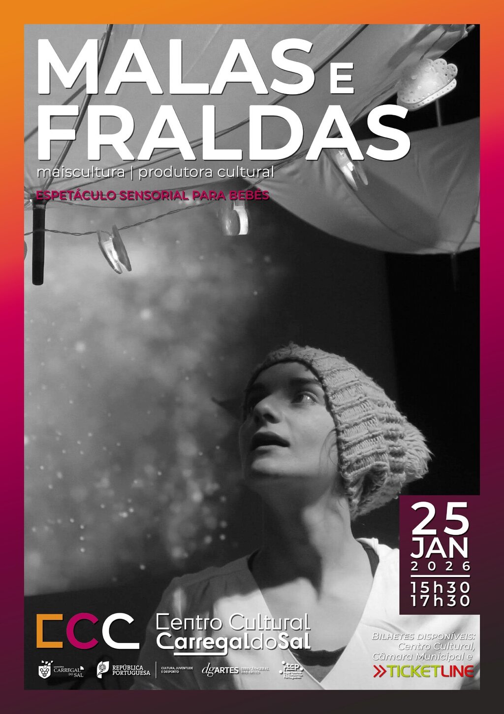 Malas, muitas malas - e dentro delas muitas músicas. Músicas de colo, de embalar, que nascem da raiz: África, Brasil, Japão, India, Portugal. Malas com carpas, bolas, fitas, instrumentos que embalam os ritmos dos bebés ao colo das mães e dos pais. Malas com magia: sorrisos, gestos, tsurus de papel, estrelas a dançar com a música. V744em também viajar connosco, mas não tragas a mala. Traz só a tua fralda.