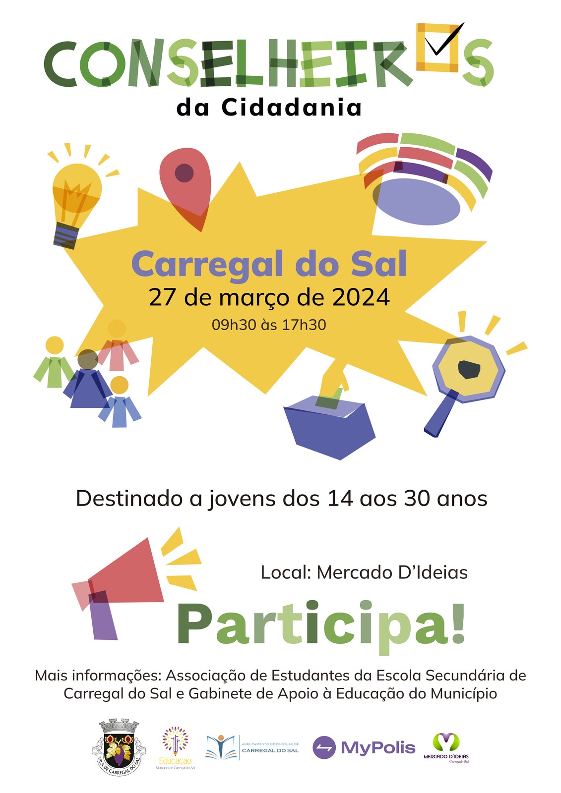 A MyPolis lançou o desafio ao Município de Carregal do Sal, para a dinamização de um Bootcamp “Conselheiros da Cidadania”, a realizar no dia 27 de março, no Mercado D’Ideias, dirigido a todos os jovens dos 14 aos 30 anos.