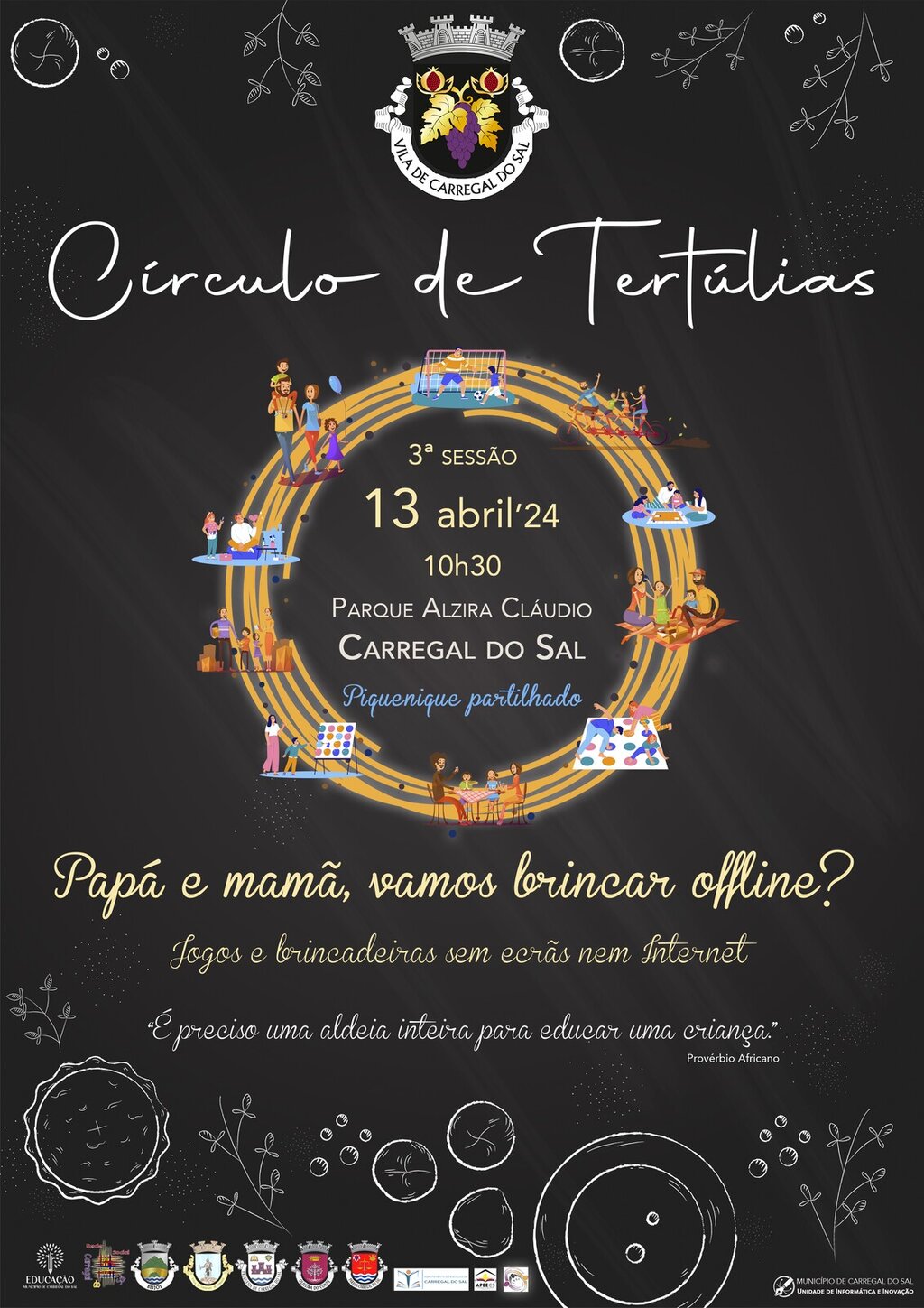 “Papá e mamã, vamos brincar offline?” é o tema escolhido pelo Gabinete de Apoio à Educação para esta Tertúlia, que será dinamizada pelo Professor Vítor Pires e terá como objetivo proporcionar às famílias alternativas criativas de entretenimento, longe dos ecrãs e da Internet, propiciando um cenário ideal para a celebração da vida offline.