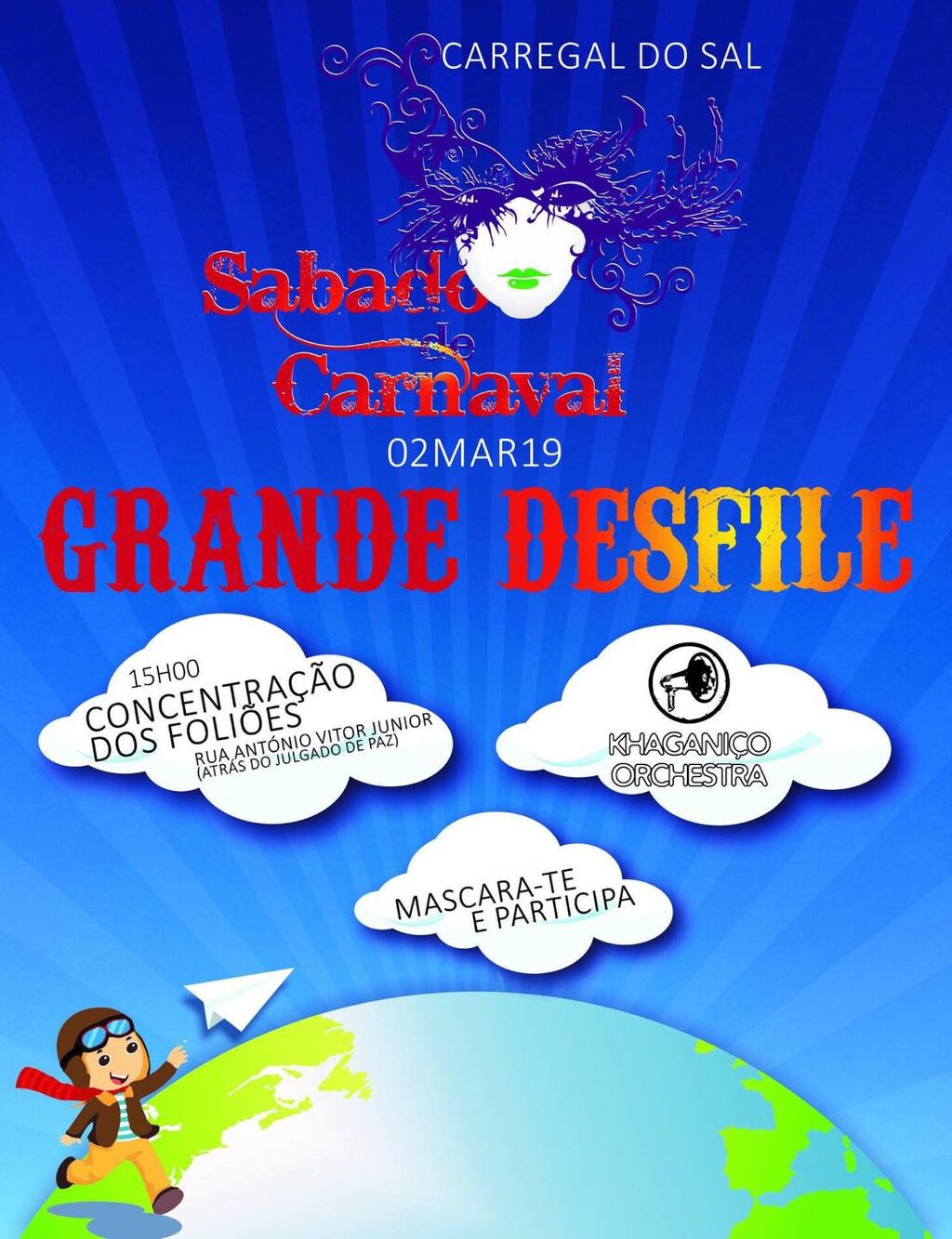 Com concentração marcada para as 15horas, o Desfile realiza-se ao som da música característica desta época, transportada em camião, e este ano os Khaganiço Orchestra também lá vão estar para animar ainda mais a festa!