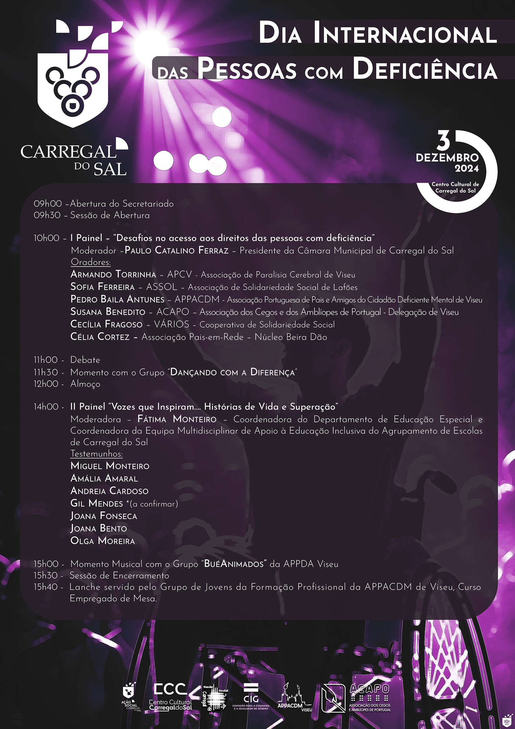 Carregal do Sal vai assinalar, no âmbito do Plano de Ação da Rede Social e do Plano Municipal para a Igualdade e Não Descriminação, o Dia Internacional das Pessoas com Deficiência - 3 de dezembro, com a realização de um Seminário, no Centro Cultural de Carregal do Sal.