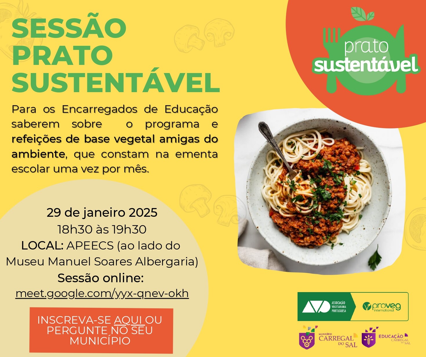 Assista, presencial ou online e saiba mais sobre o programa e refeições de base vegetal amigas do ambiente, que integram a ementa escolar do(a) seu(sua) educando(a).