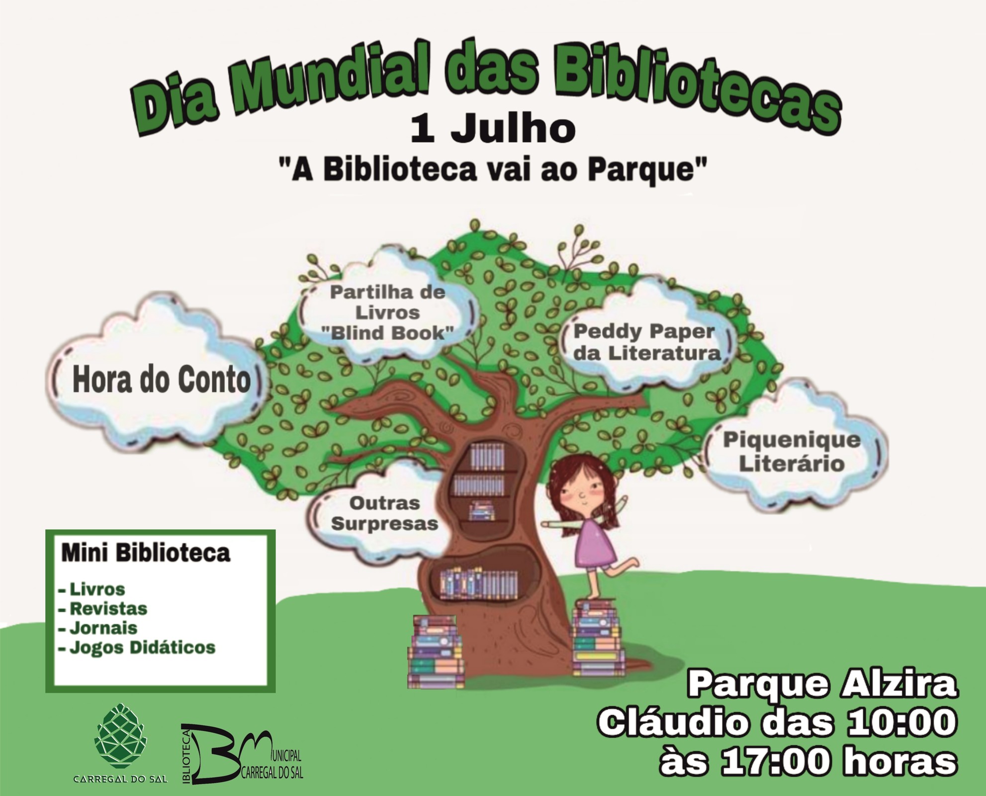 Para assinalar este dia, a Biblioteca Municipal de Carregal do Sal, pretende levar a biblioteca para fora de portas, “abrindo-a” à comunidade. O local escolhido é o recém-renovado Parque Alzira Cláudio.