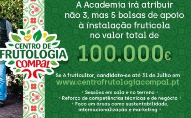 Se é empreendedor frutícola e ambiciona expandir o seu negócio, pode candidatar-se até julho em www.centrofrutologiacompal.pt/academia. Este ano, serão entregues 5 Bolsas de Instalação Frutícola no valor de 100.000€.
