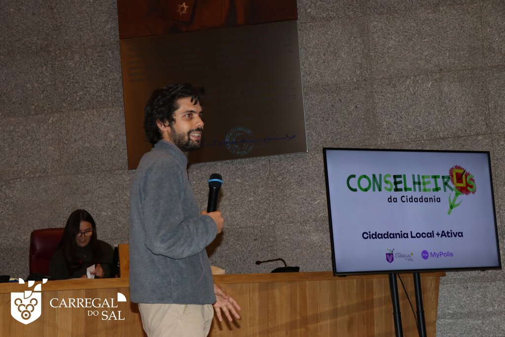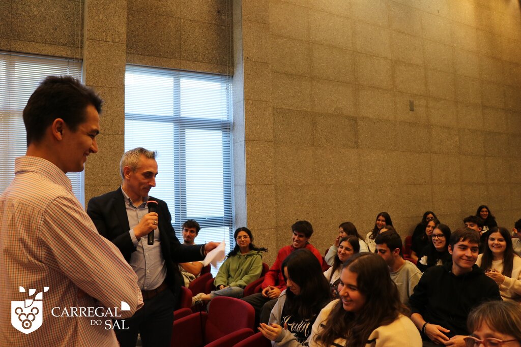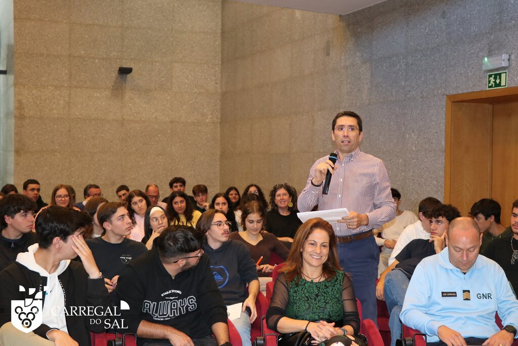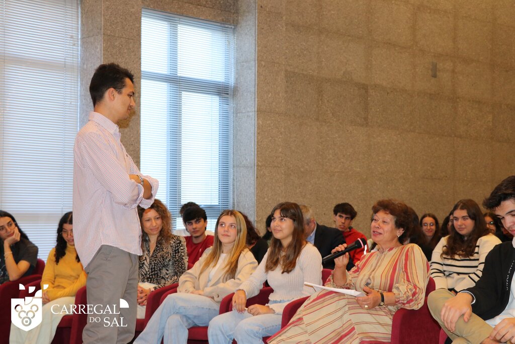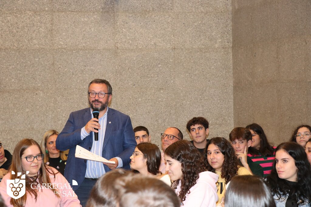 Os alunos do 12.º ano e uma turma do 10.º do Agrupamento de Escolas de Carregal do Sal participaram, no dia 6 de novembro, numa ação dinamizada pela MyPolis, realizada no Salão Nobre Aristides de Sousa Mendes, a convite do Município de Carregal do Sal.
