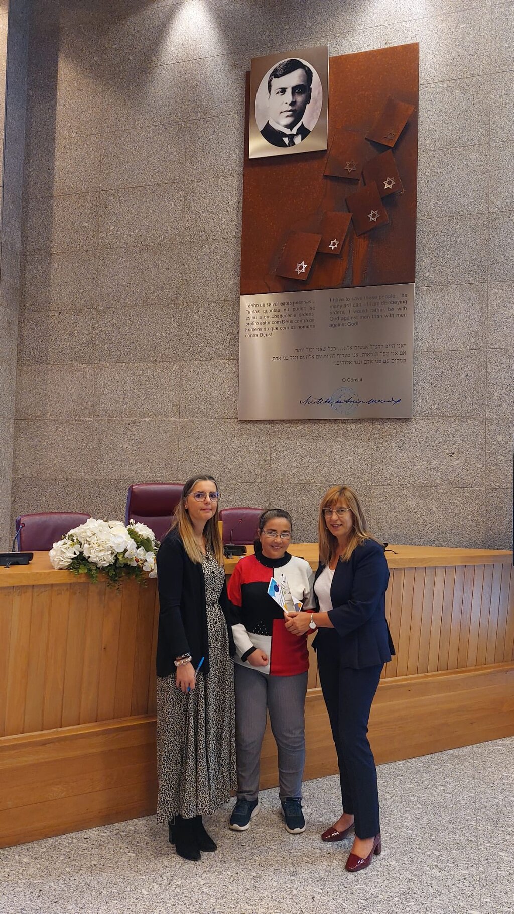 A Vice-Presidente da Câmara Municipal, Isabel Azevedo, acolheu-os, uma vez mais de braços abertos, e recebeu os “miminhos” de sensibilização ofertados pelos próprios utentes, no Salão Nobre dos Paços do Concelho.