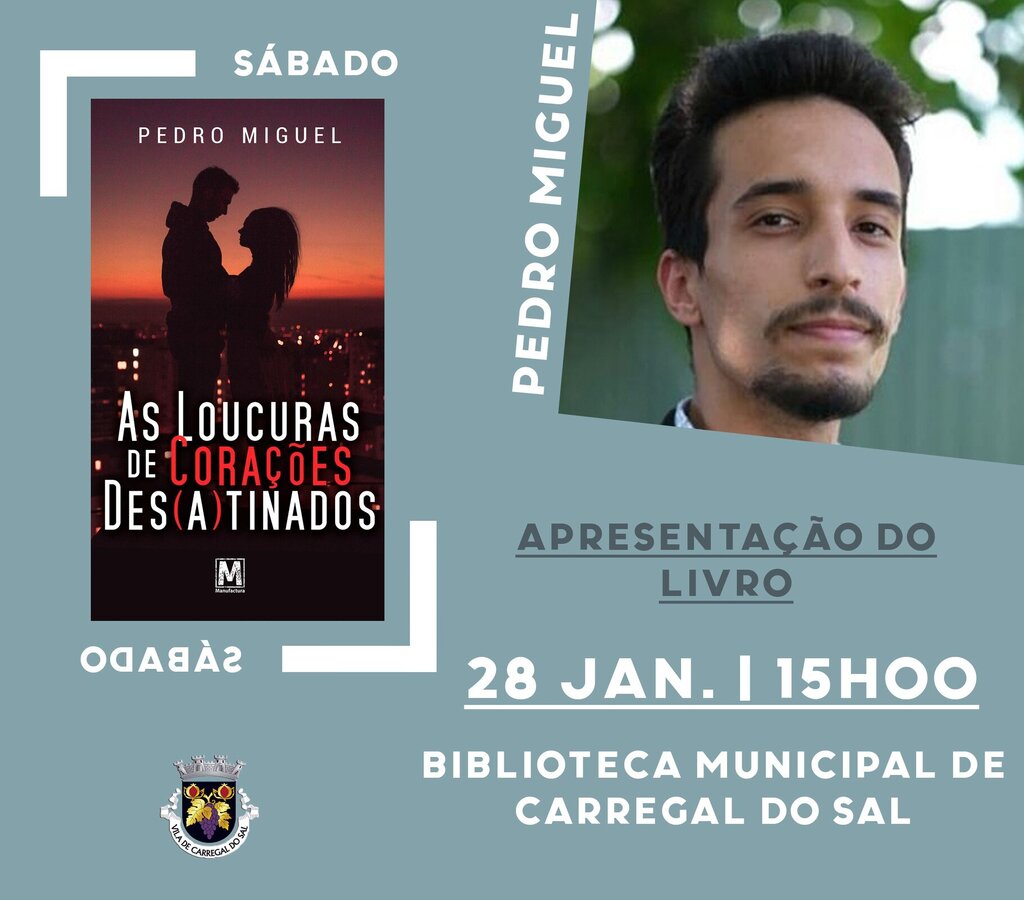 A Biblioteca Municipal de Carregal do Sal irá acolher, no próximo dia 28 de janeiro, pelas 15 horas, a apresentação do livro "As loucuras de corações des(a)tinados" de Pedro Miguel.