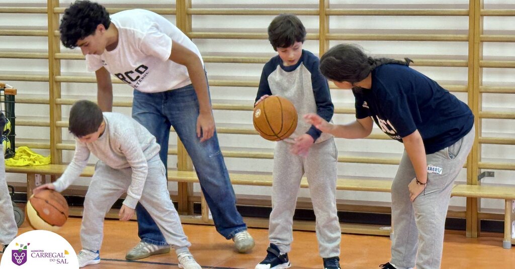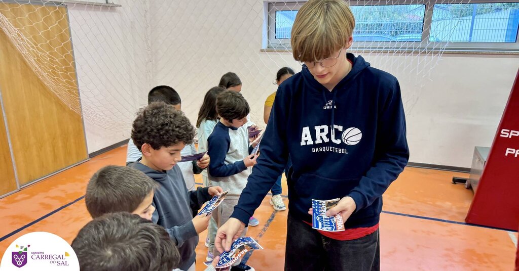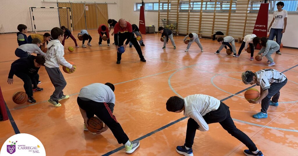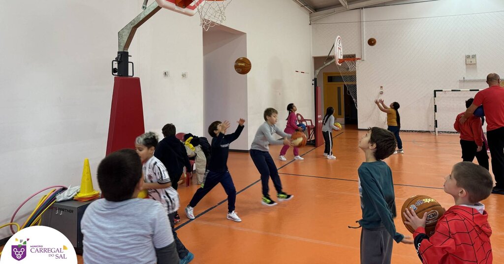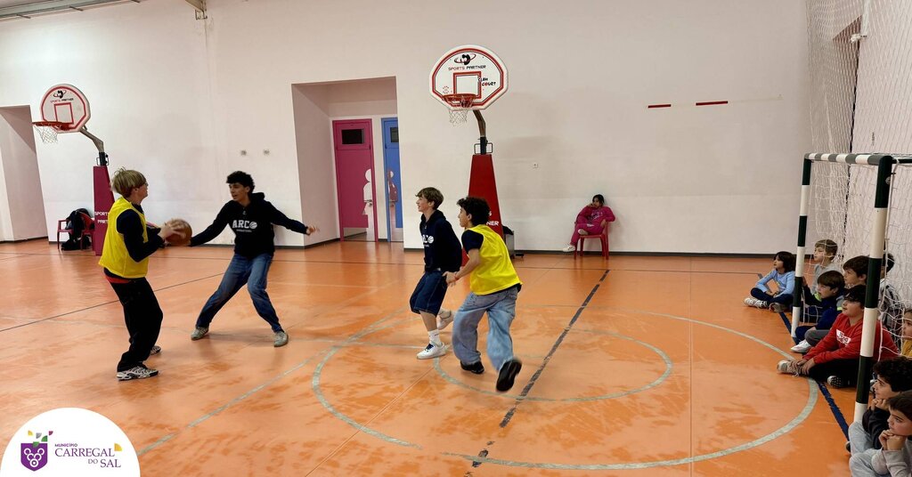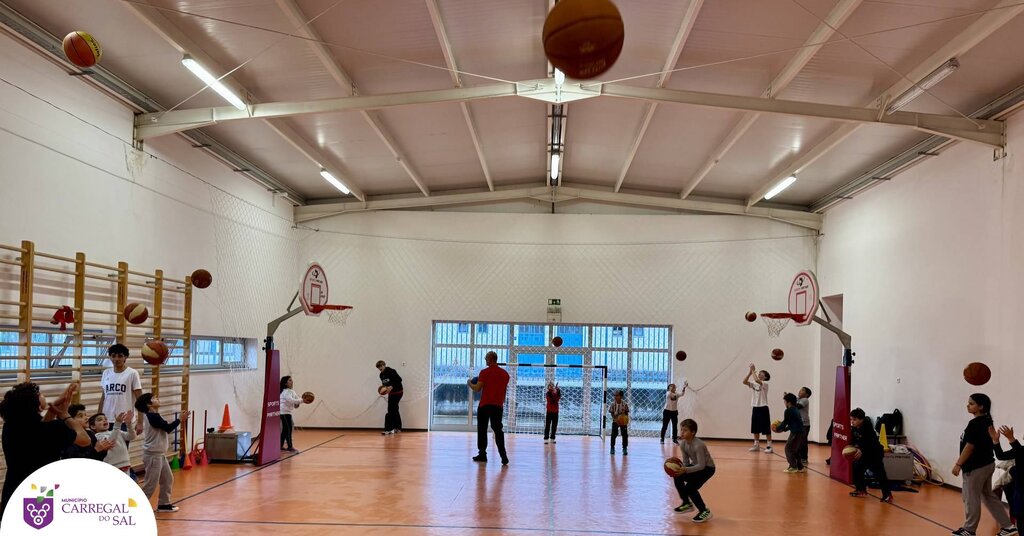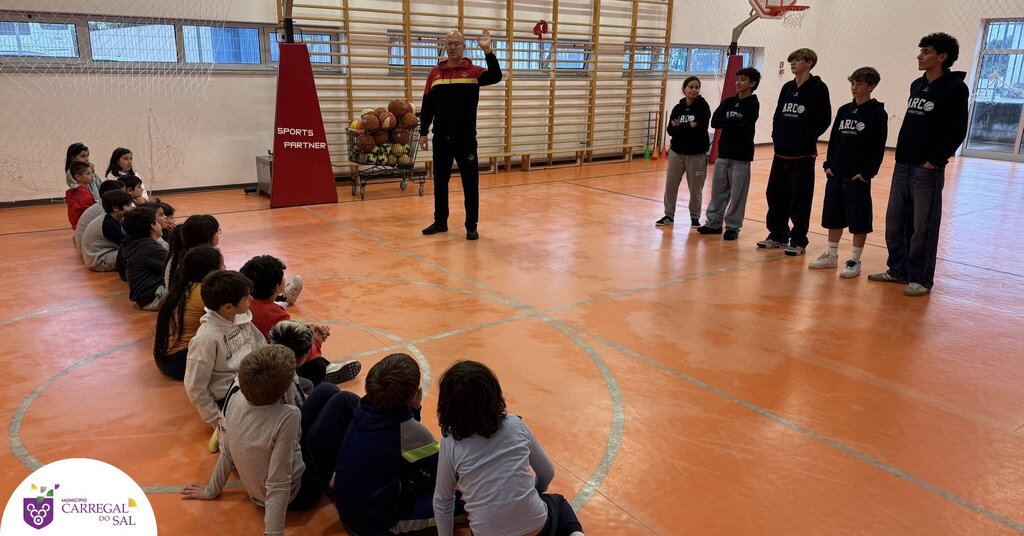Os alunos das turmas 3.º B e 2.º B do 1.º Ciclo do Agrupamento de Escolas de Carregal do Sal participaram numa sessão dedicada à modalidade de basquetebol, promovida no âmbito do Projeto Minibasquete.