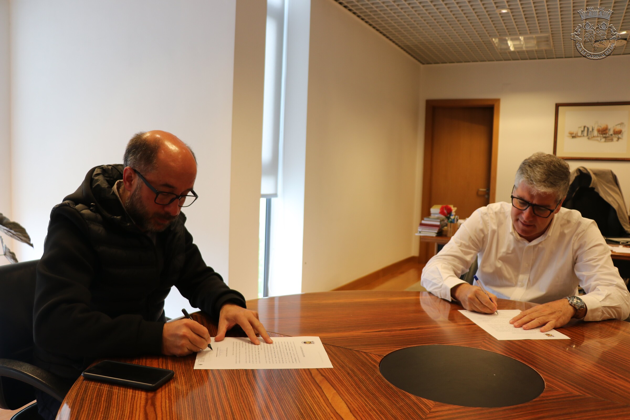 O documento, firmado entre o Presidente da Câmara Municipal de Carregal do Sal, Paulo Catalino Ferraz e o representante da empresa adjudicatária, Vitor Maltez, da Embeiral – Engenharia e Construção S.A. foi assinado no Gabinete do Autarca carregalense e diz respeito à intervenção de alteração do cruzamento localizado na Praça da República e à requalificação do pavimento betuminoso e repintura da sinalização horizontal, entre a farmácia Abreu, (Cruzamento com o arruamento urbano sul de vila), até à rotunda sul, nas imediações do Intermarché.