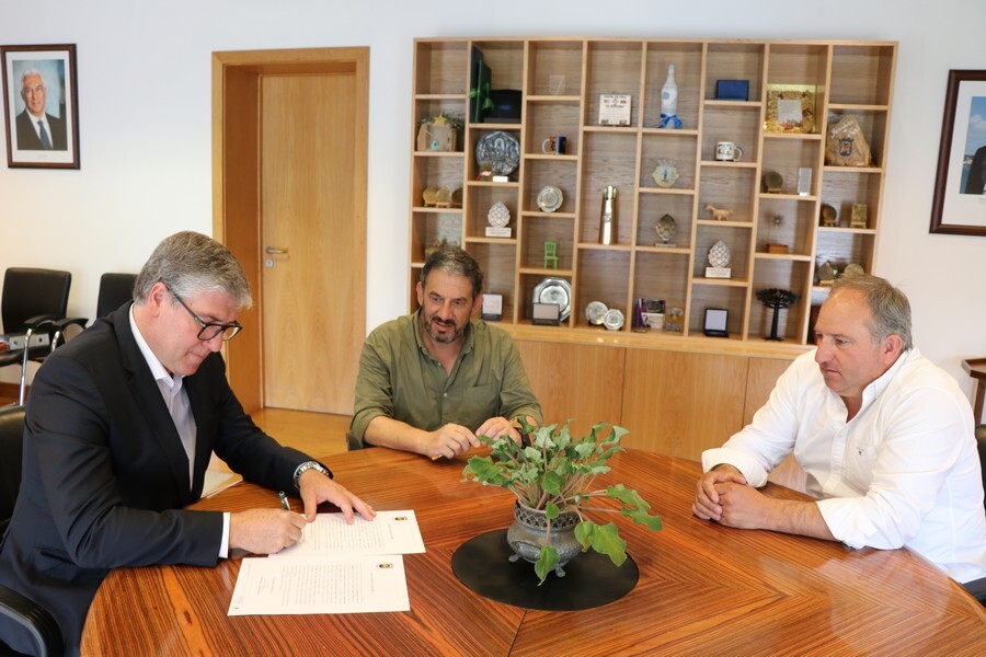 O documento, firmado com a empresa adjudicatária – Irmãos Almeida Cabral, Lda., foi assinado pelo Presidente da Edilidade, Paulo Catalino Ferraz e pelo representante da empresa, João Paulo de Almeida Cabral, no edifício dos Paços do Concelho.