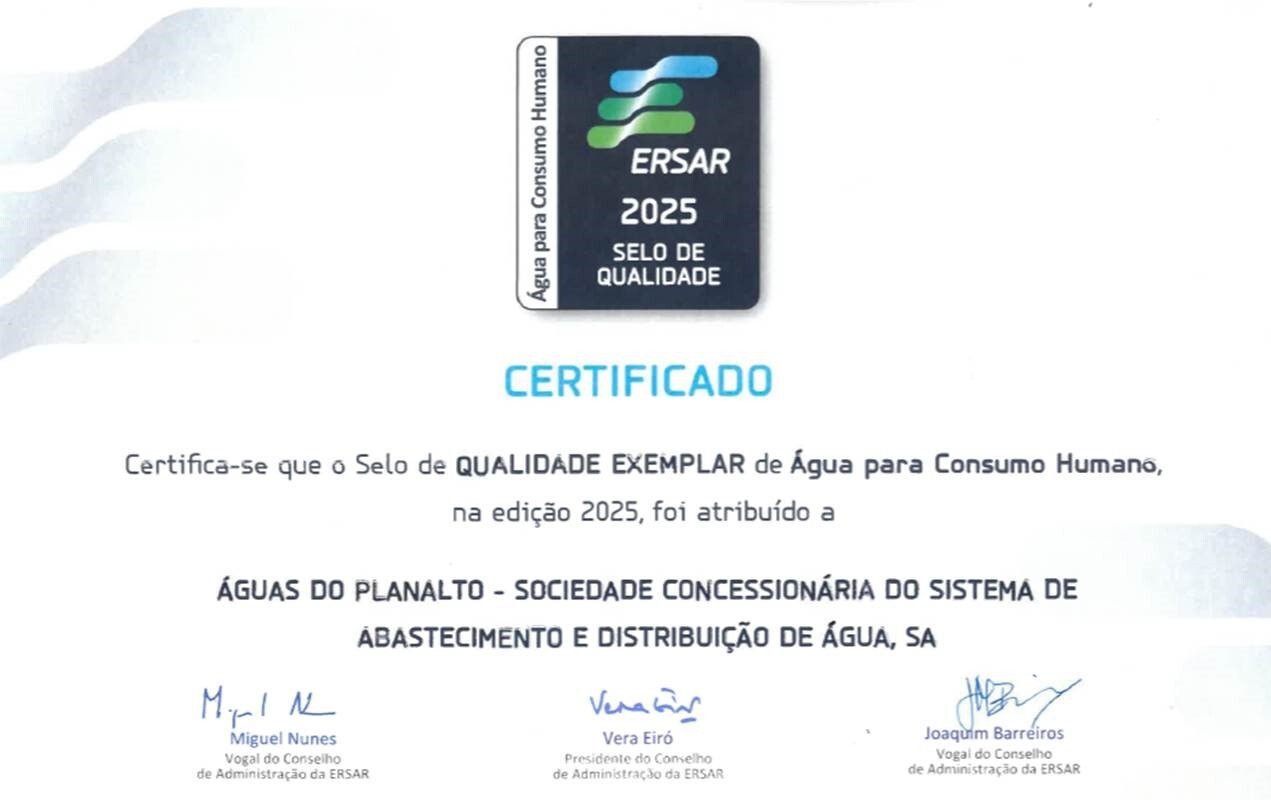 A Águas do Planalto foi distinguida pela Entidade Reguladora dos Serviços de Águas e Resíduos (ERSAR) com o galardão Selo de Qualidade Exemplar da Água para Consumo Humano, sendo que o reconhecimento é “fruto da dedicação e empenho de todos os que trabalham na Águas do Planalto”, informação transmitida pela concessionária do Sistema Público de Abastecimento e Distribuição de Água aos Municípios de Carregal do Sal, Mortágua, Santa Comba Dão, Tábua e Tondela.