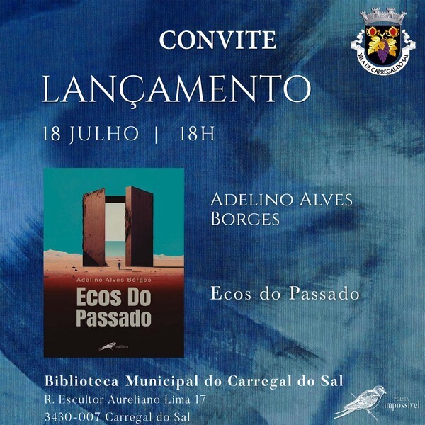 No próximo dia 18 de julho, na Biblioteca Municipal de Carregal do Sal, aos 84 anos, inspirado na vida, no amor, na esperança e na fé, Adelino Alves Borges apresenta a sua primeira obra a solo – “Ecos do Passado”.