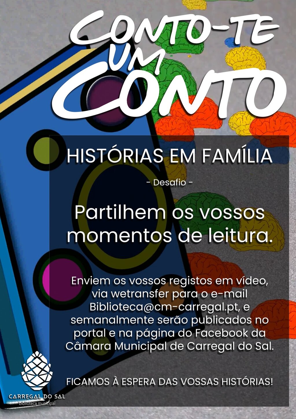 A partir de hoje, 15 de fevereiro, enviem os vossos registos em vídeo, via wetransfer para o e-mail Biblioteca@cm-carregal.pt, e semanalmente serão publicados no portal e na página do Facebook da Câmara Municipal de Carregal do Sal.