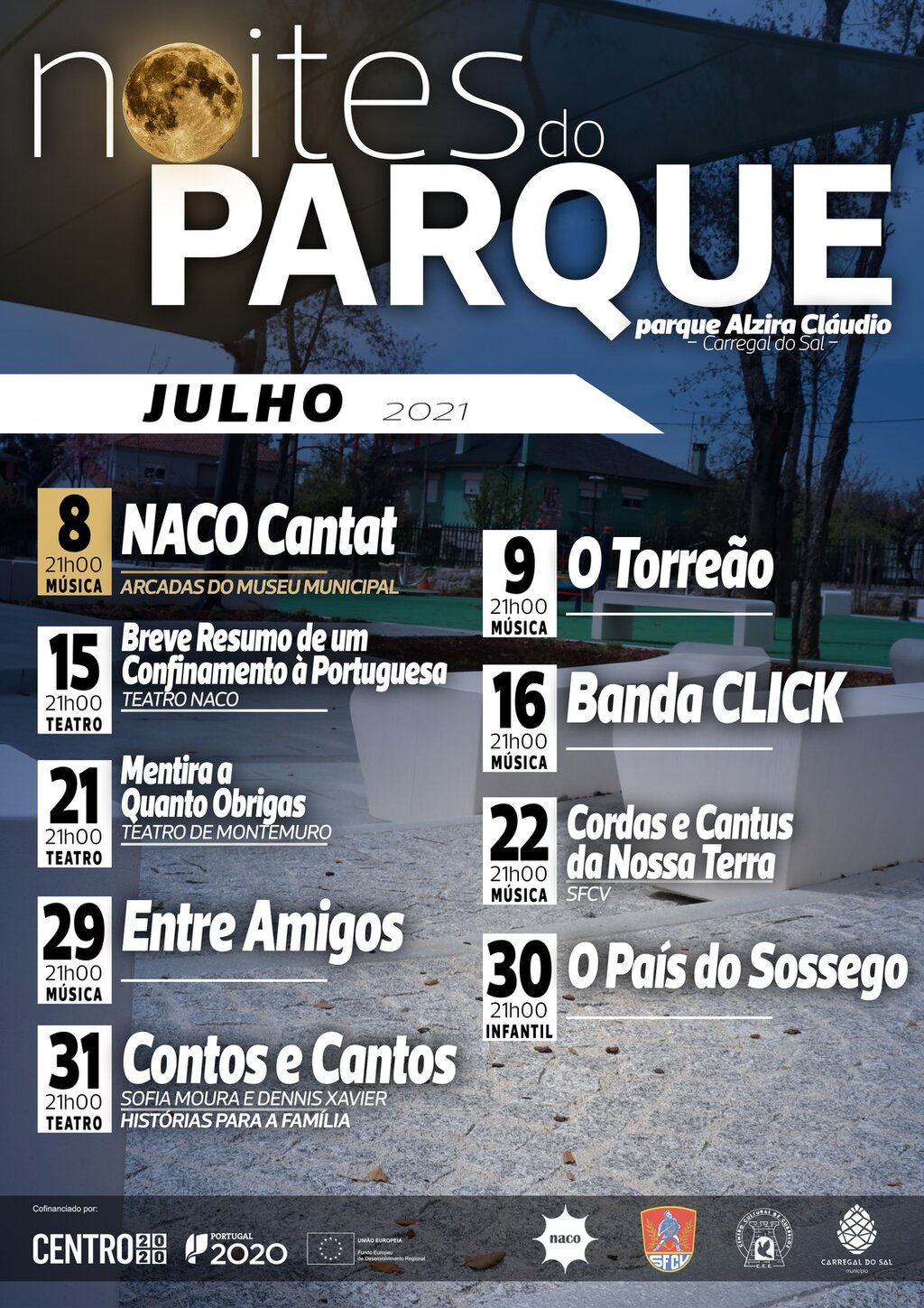 De julho a outubro, há diferentes “Noites do Parque” Alzira Cláudio!