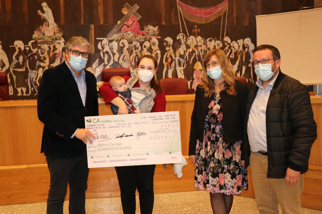 A Câmara Municipal entregou hoje o 1.º cheque, no âmbito do Programa Nascer em Carregal - Regulamento Municipal de Apoio à Natalidade e Adoção.
