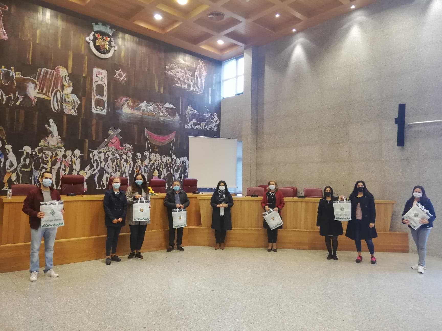 Perante os constrangimentos dos tempos atuais, a Câmara Municipal chamou os representantes dessas entidades aos Paços do Concelho e simbolicamente entregou-lhes uma manta.