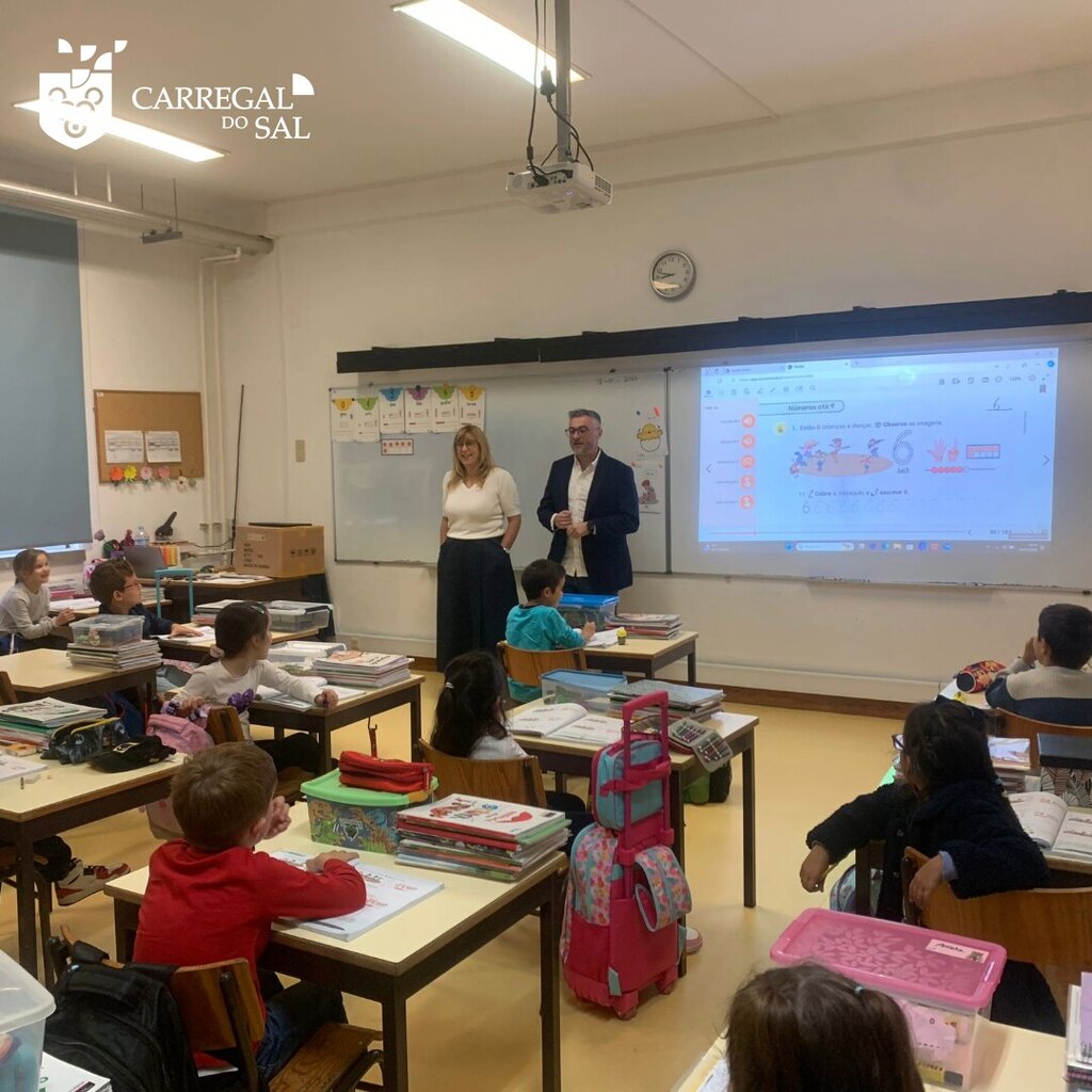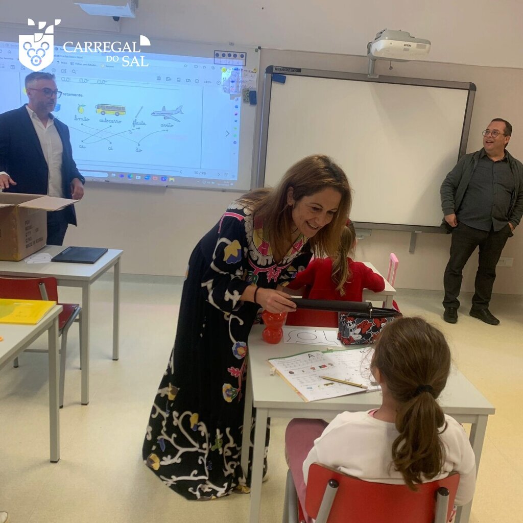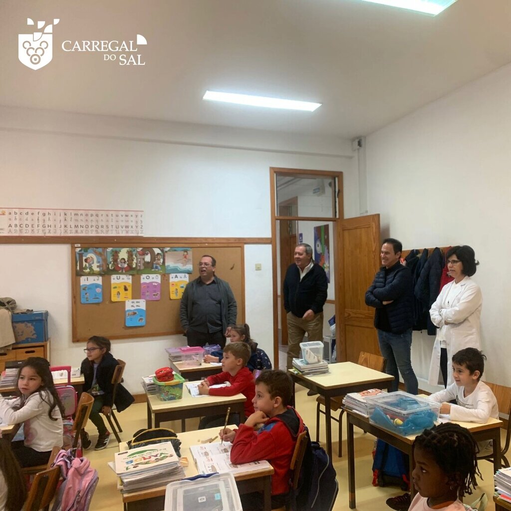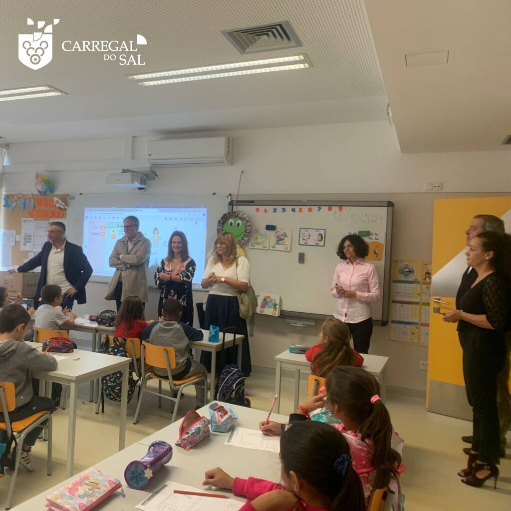 Na EBNA pelo Presidente da Câmara Paulo Catalino e pela Vice-Presidente Isabel Azevedo, acompanhadas por elementos da Direção do Agrupamento de Escolas de Carregal do Sal nomeadamente, a Diretora Maria João e o Adjunto Carlos Martelo.