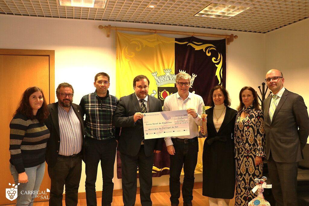 A Direção de Empresas da Caixa Geral de Depósitos visitou a Câmara Municipal de Carregal do Sal, trazendo na “algibeira” um cheque simbólico, com o valor dos donativos recolhidos junto dos colaboradores da rede de Gabinetes Caixa Empresas, a nível nacional, no âmbito da ação solidária “Natal 2024”, que entregou ao Presidente da Câmara Municipal, Paulo Catalino Ferraz.