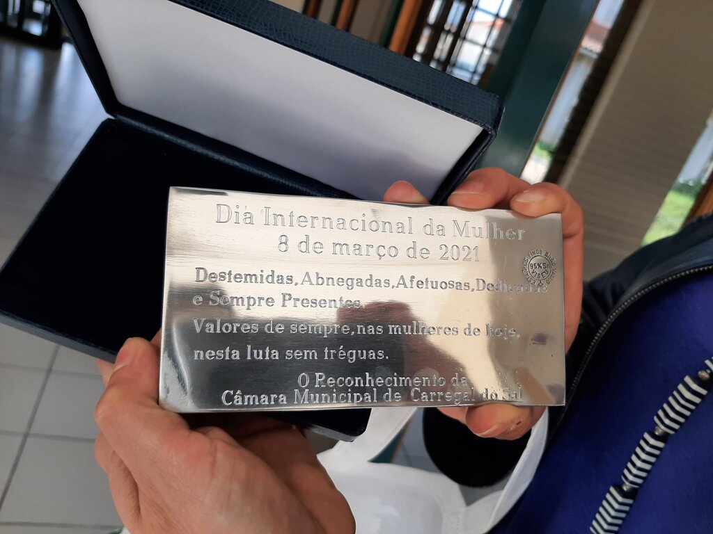 A Câmara Municipal de Carregal do Sal entregou um ramo de flores e uma placa com a imagem do edifício dos Paços do Concelho e uma mensagem gravada às instituições de Solidariedade Social, à Saúde e à Proteção Civil do Concelho.