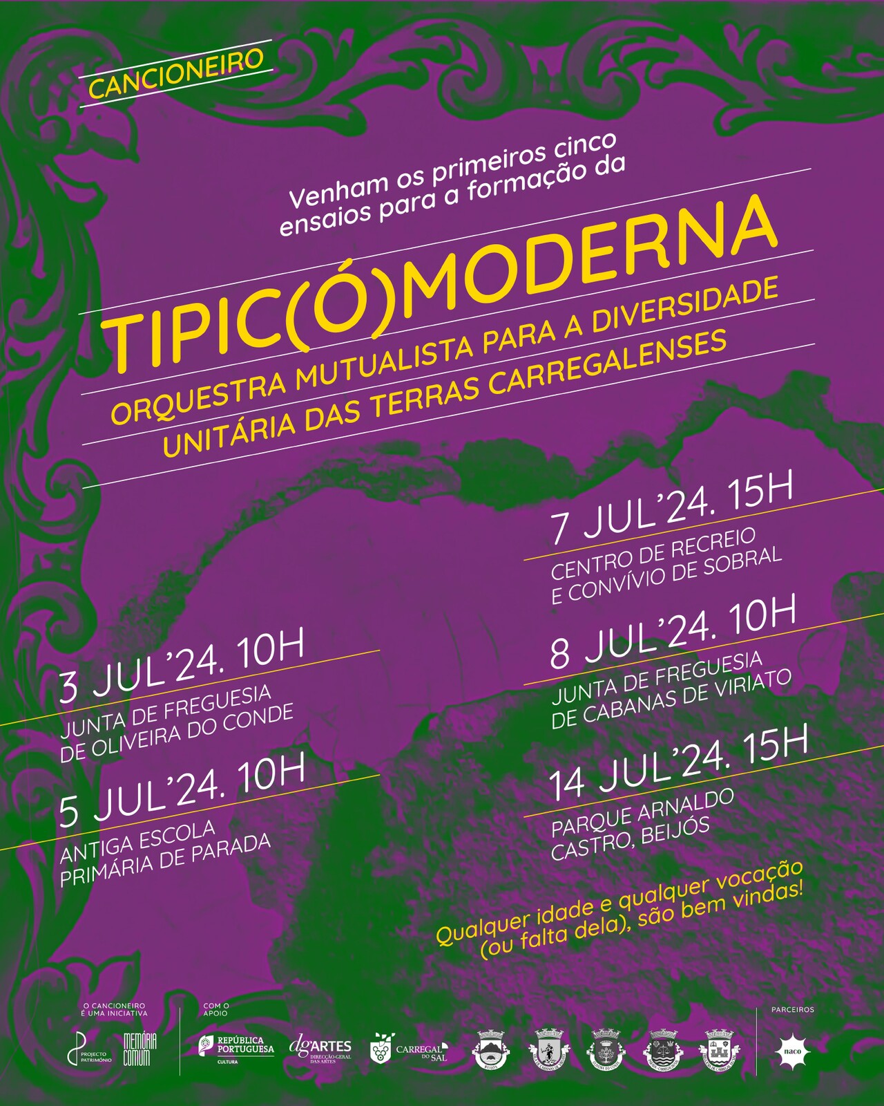 Se sabe, melhor ainda! É Julho, o querido mês de Julho. Sejam destas bandas ou de qualquer dos quatro cantos do país... ou do estrangeiro, porque não? Venham connosco formar a tipic(Ó)moderna - Orquestra Mutualista para a Diversidade Unitária das Terras Carregalenses!