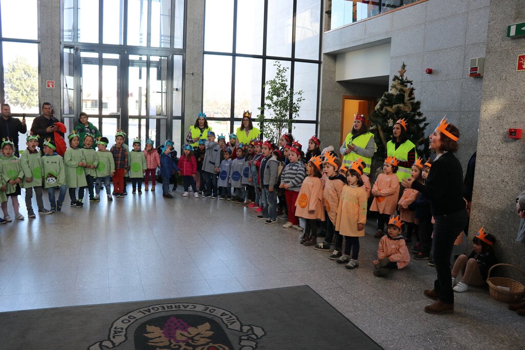 Os mais pequenos foram os primeiros a atuar. Vozes e instrumentos fizeram-se ouvir numa prestação enriquecida com a ostentação, pelos mais pequenos, de uma coroa na cabeça lembrando os reizinhos. Elementos do executivo, trabalhadores e munícipes, na maioria encarregados de educação dos mais pequenos, ouviram atentamente e aplaudiram a atuação. E a resposta não se fez tardar. O Vereador da Educação e a Vereadora da Ação Social, José Sousa Batista e Ana Cristina Borges respetivamente, ofertaram-lhes as habituais guloseimas.