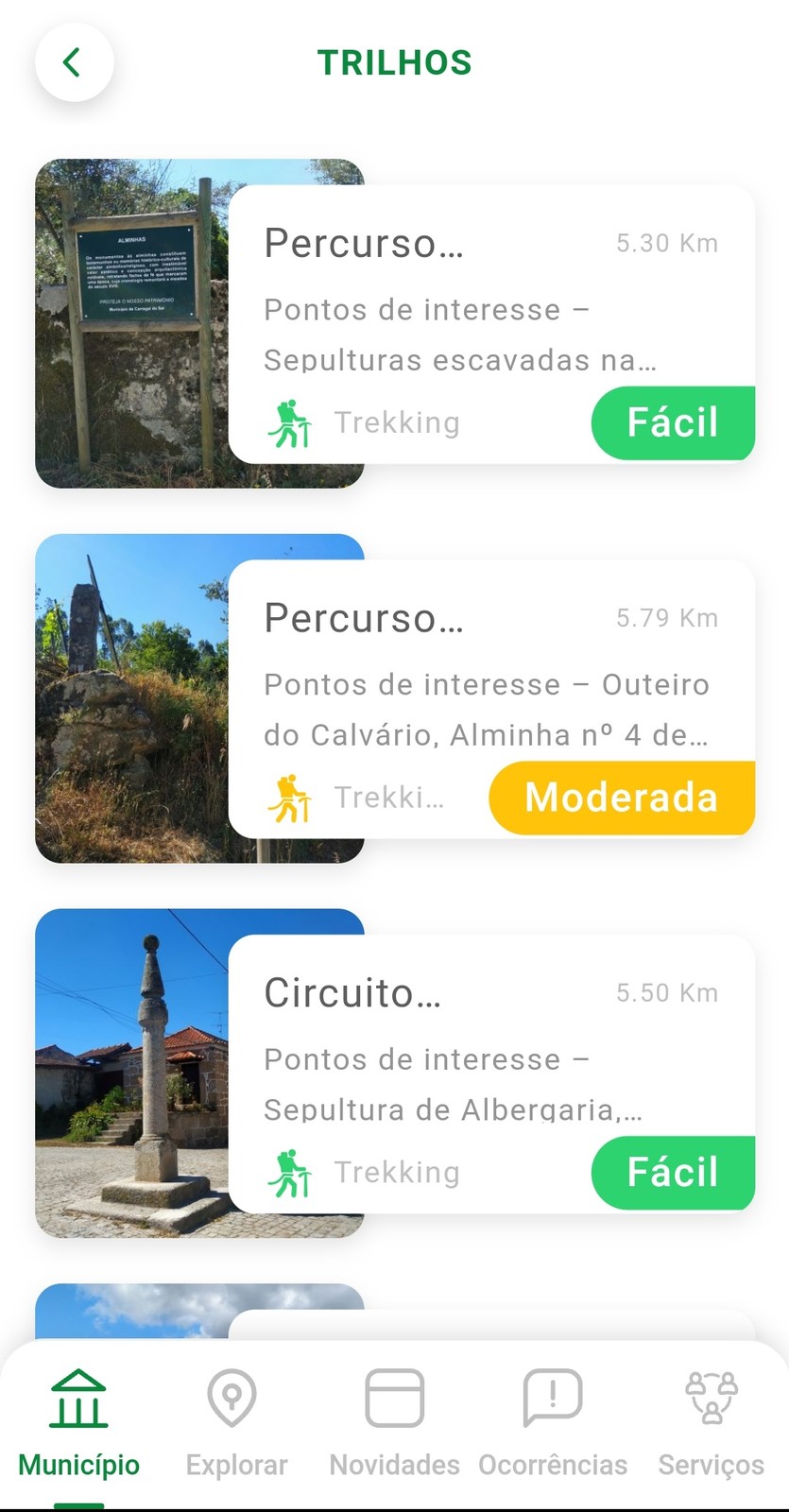 Ali, você encontra os Percursos, Circuitos e Rotas disponíveis para fruição (em constante atualização). E, em cada um deles, informações úteis como a distância, a duração, os pontos de interesse e o grau de dificuldade.