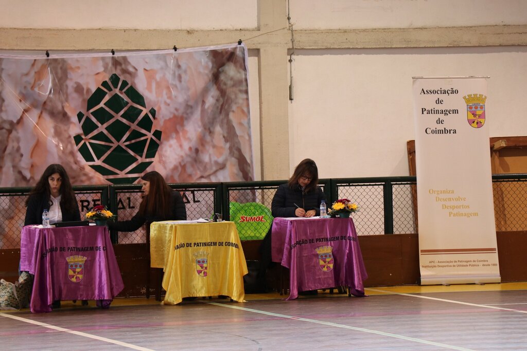 A prestação de provas decorreu entre as 9h30 e as 21h, sob o olhar atento e avaliação das juízas Cláudia Marques (juiz árbitro), da Associação de Patinagem de Leiria, Ana Catarina Carapito e Rafaela Frade (juízes de cotação), da APCoimbra, coadjuvados por Pedro Luzio, da Federação de Patinagem de Portugal, na função de calculador informático das notas atribuídas.