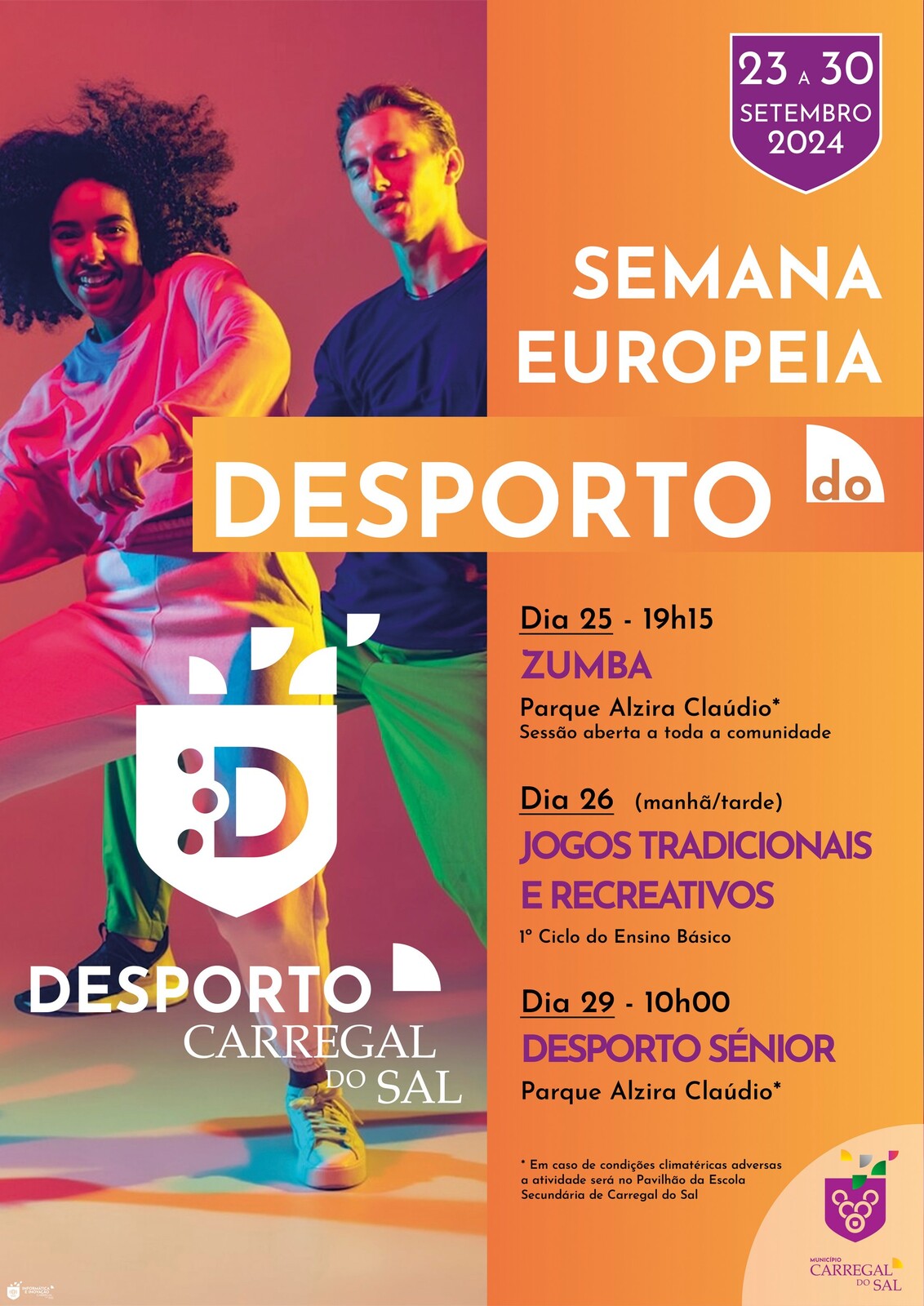 O Município de Carregal do Sal associa-se à iniciativa Semana Europeia do Desporto e convida os Munícipes a participarem nas atividades previstas para os dias 25, 26 e 29 de setembro.