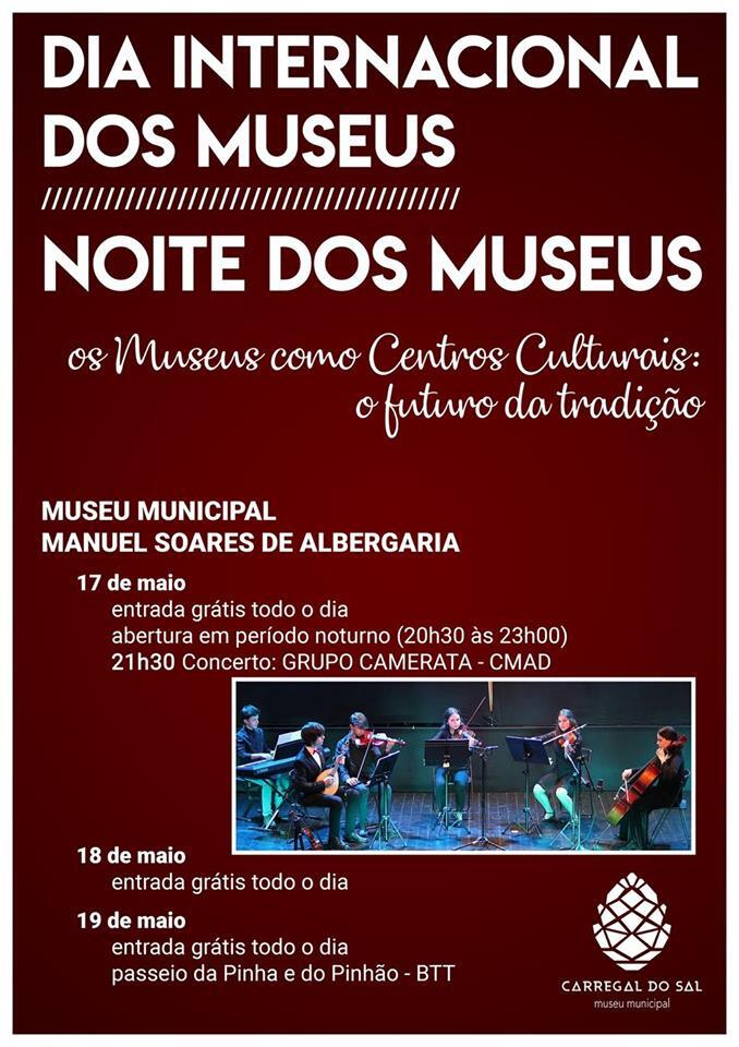 Entrada grátis; abertura, em período noturno (20h30 às 23h00) e Concerto da Camerata de Cordas do CMAD - Conservatório de Música e Artes do Dão, no dia18 e Passeio de BTT, no dia 19 são as propostas de comemoração para assinalar as efemérides criadas, a primeira em 1977 e a segunda em 2005, pelo ICOM – Conselho Internacional de Museus.