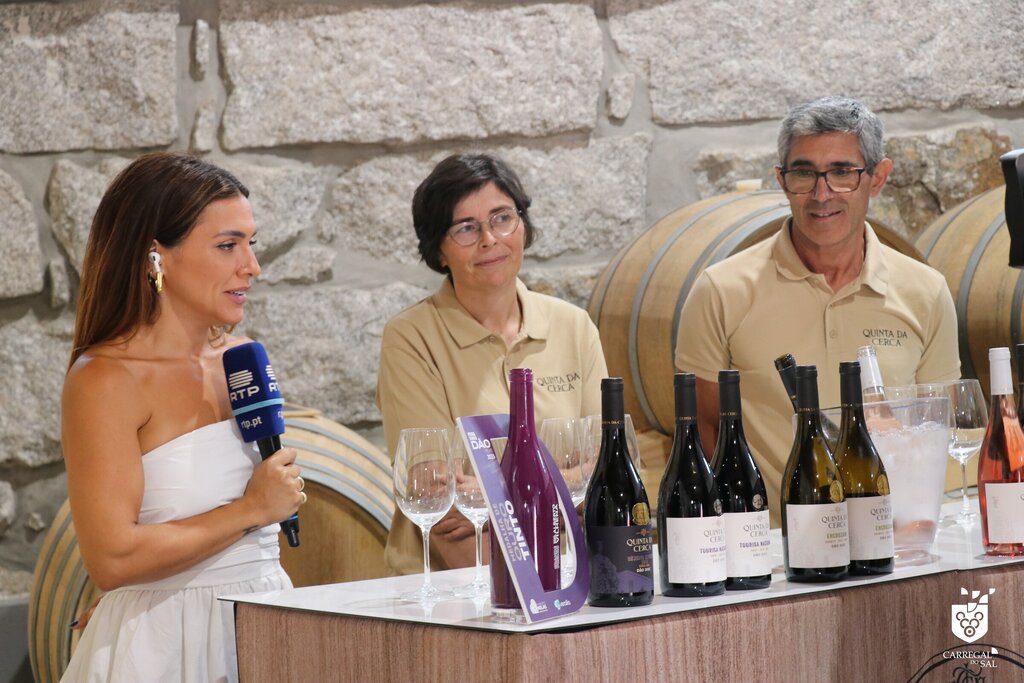 Em plena adega, coube a Célia Costa (enóloga) e a Vitor Loureiro falarem do delicioso néctar e a Luís Santos, do Fumeiro Flor de Sal, apresentar, de forma sucinta, os enchidos de Carregal do Sal por si confecionados e premiados em concurso nacionais, a que aliou o queijo Flor da Beira, o Bolo Torto de Cabanas de Viriato e a secular Ginja Victor.