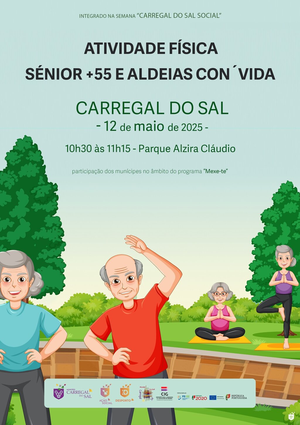 - Dia 12 - “Atividade Física Sénior +55” e “Aldeias Con’Vida” (manhã) e “Interagir para (Re)Viver” (tarde), no Parque Alzira Cláudio;