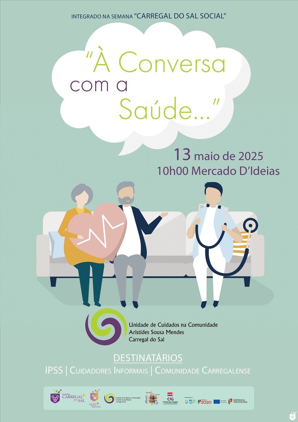- Dia 13 – “À conversa com a Saúde” dinamizada pela UCC Aristides de Sousa Mendes, no Mercado d’Ideias de Carregal do Sal;