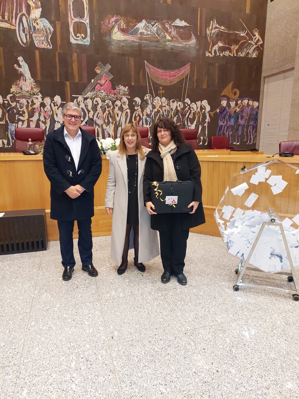 Enquanto discursava, os cupões foram sendo retirados das respetivas caixas e, rodada a tômbola, eis os felizes contemplados: