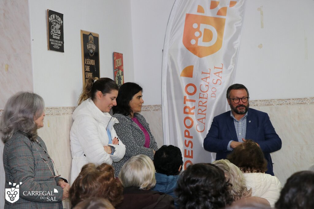 Complexo das Piscinas Municipais de Carregal do Sal. 9h30 de manhã de 14 de novembro. Perto de 50 munícipes, técnicos do desporto, da ação social, da educação e uma enfermeira da Unidade de Cuidados na Comunidade Aristides de Sousa Mendes.