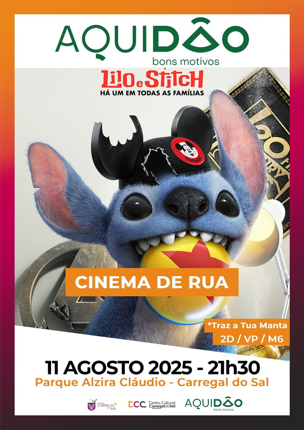 📅 Dia 11 de Agosto, próxima segunda-feira, o relvado do Parque Alzira Cláudio volta a transformar-se num palco de emoções, desta vez com a exibição do adorável e hilariante filme "Lilo e Stitch". Traga a sua manta, reúna a família e os amigos, e prepare-se para uma noite de gargalhadas, ternura e espírito ‘ohana.