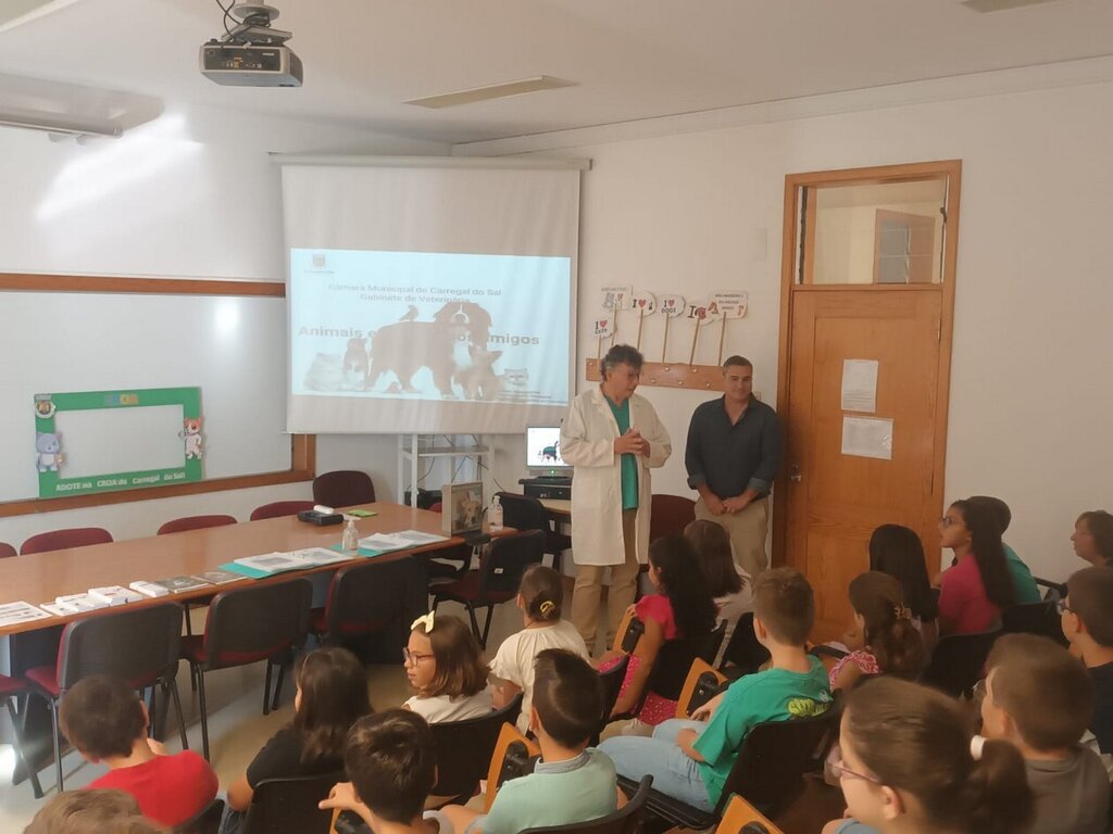 O veterinário municipal e alguns trabalhadores do CROA – Centro de Recolha Oficial de Animais de Carregal do Sal, deslocaram-se à Escola Básica Aristides de Sousa Mendes, em Cabanas de Viriato, onde foi realizada uma sessão de informação/sensibilização, conduzida pelo veterinário municipal, Paulo Jaime Matos, junto das crianças do 3.º e 4.º ano de escolaridade que assistiram atentamente.