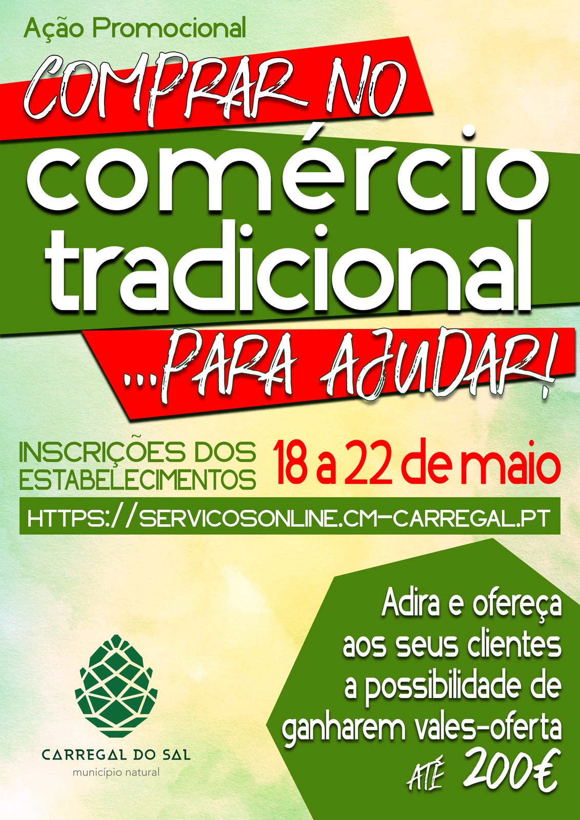 Por isso, e no seguimento de outras medidas já implementadas, a Autarquia lança agora a Ação Promocional “Comprar no Comércio Tradicional… para ajudar!, que premeia quem fizer compras nos estabelecimentos com sede social no território concelhio.
