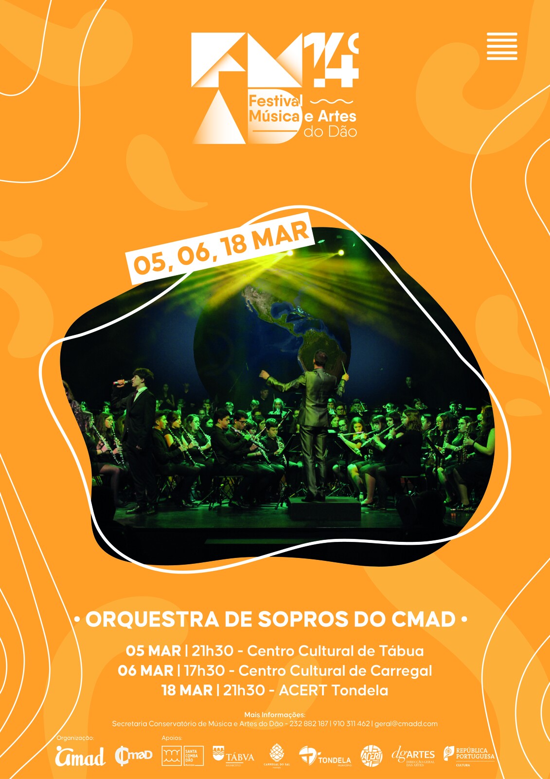 A Orquestra de Sopros do CMAD – Conservatório de Música e Artes do Dão apresenta-se no Centro Cultural de Carregal do Sal, no dia 6 de março, às 17h30.